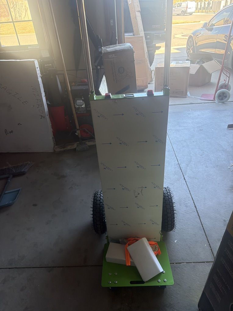 Selling a heavy-duty electric stair climbing hand truck in excellent condition. This is a powered dolly designed to move heavy appliances, safes, furniture, and more up and down stairs effortlessly.
