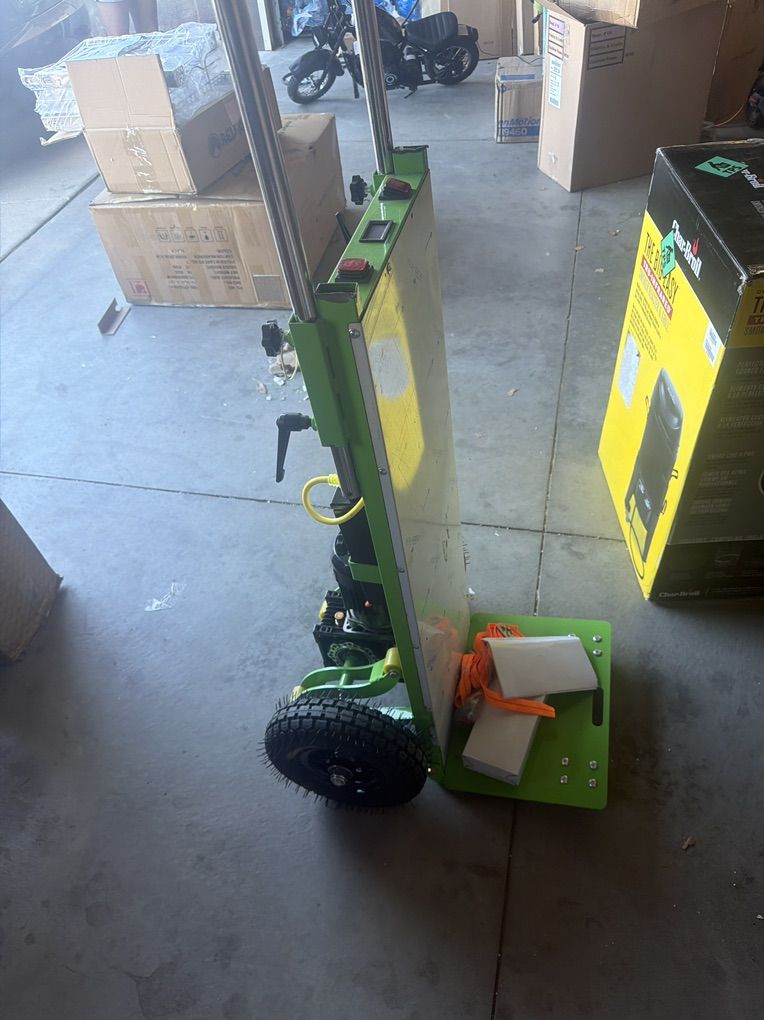 Electric motorized climbing system High weight capacity (approx. 800–900 lbs) Battery powered – plug in and go Strap included to secure loads Heavy-duty tires for stability Adjustable/telescoping handle