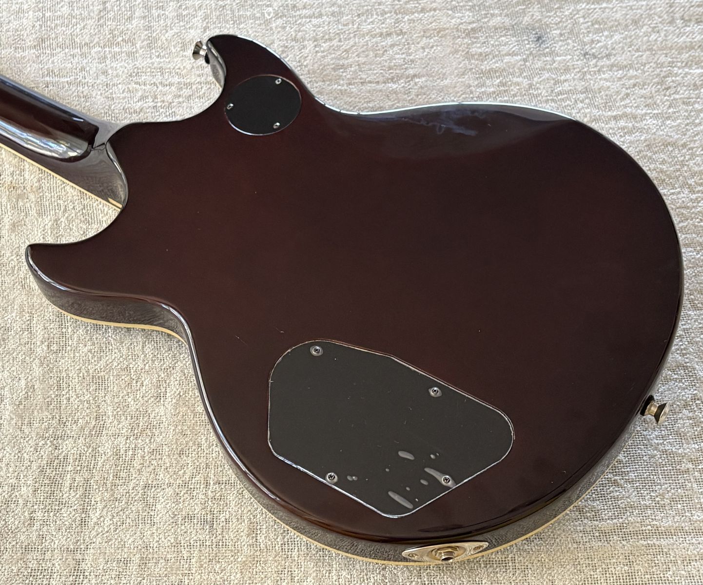 Freshly cleaned with a brand new set of D’addario 10 gauge strings just installed. Fretboard has been oiled. Fantastic condition! Has strap locks installed and comes with a strap. No case or gig bag.