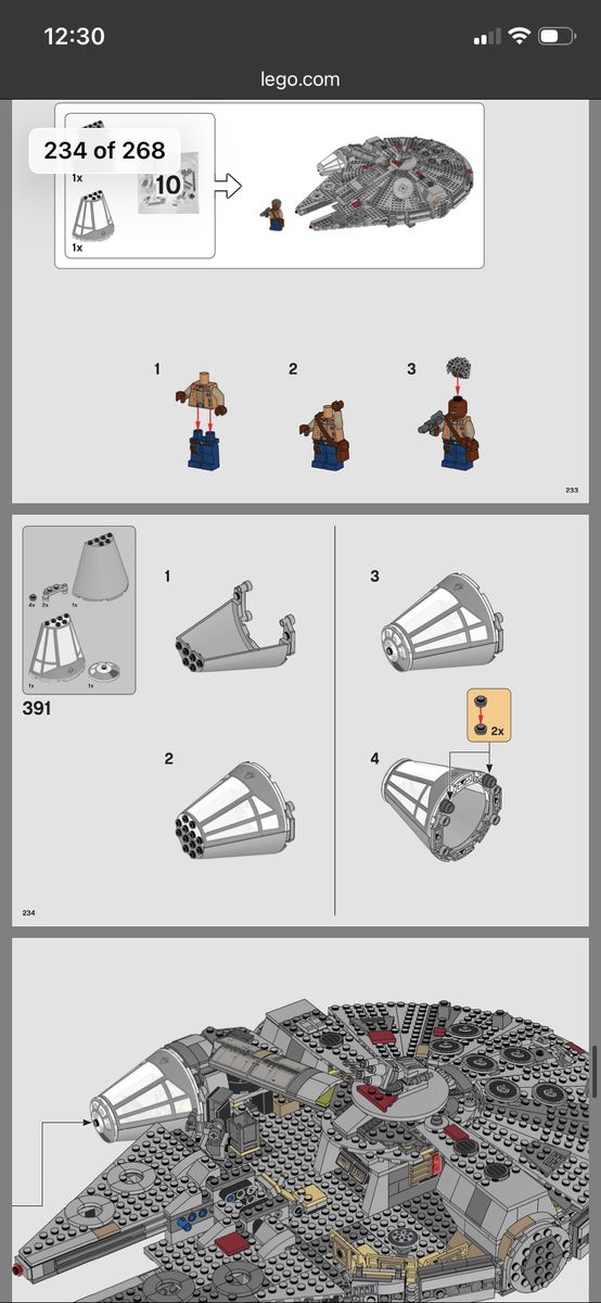 Lego Star Wars Lot- Includes the Millennium Falcon 75257 and Obi-Wan’s Jedi Starfighter 75333. The Millennium Falcon is missing several pieces and does not include the minifigures. I have included screenshots of the pieces that are missing or have been substituted for different pieces. The stove is tan instead of white for example. Obi-Wan’s Jedi Starfighter is complete but 4 pieces on one of the engines have been glued together. Missing obi-wan’s hairpiece. Condition is used as pictured