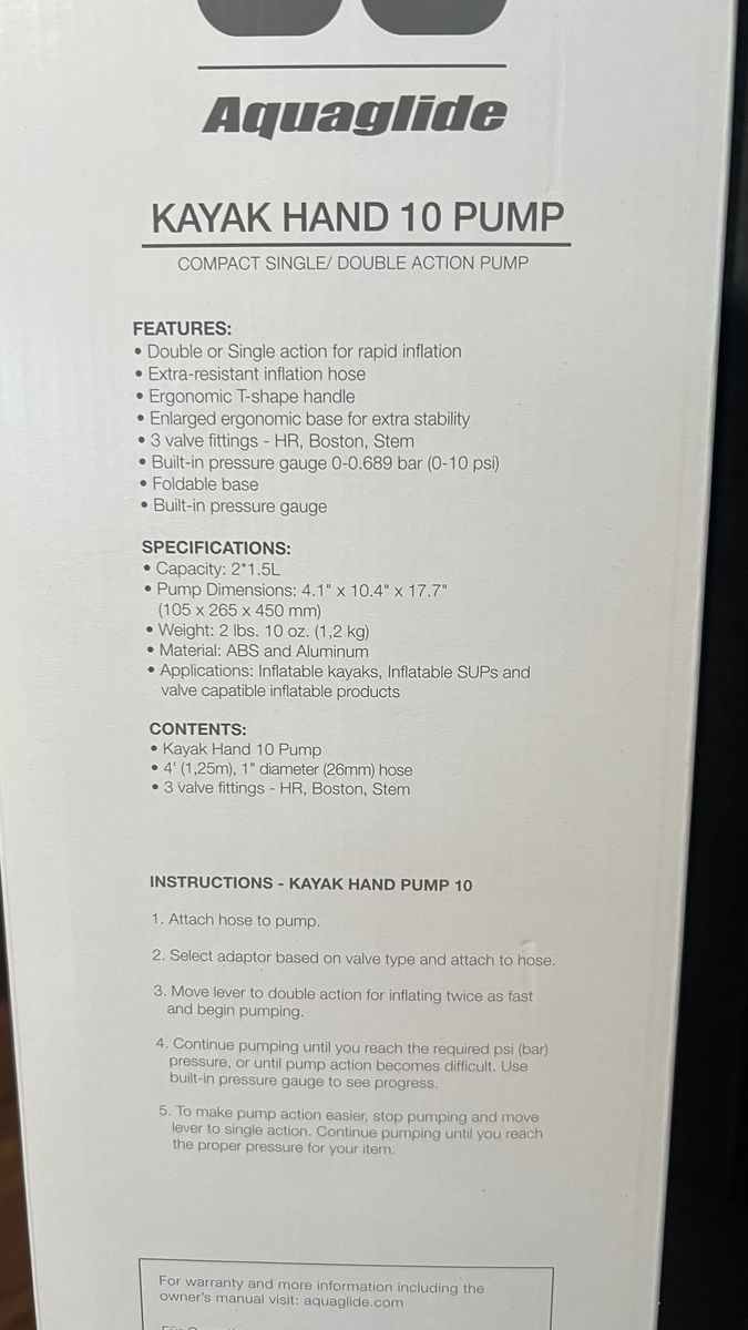 PayPalBrand new. Never used, kayak pump. Description in picture.