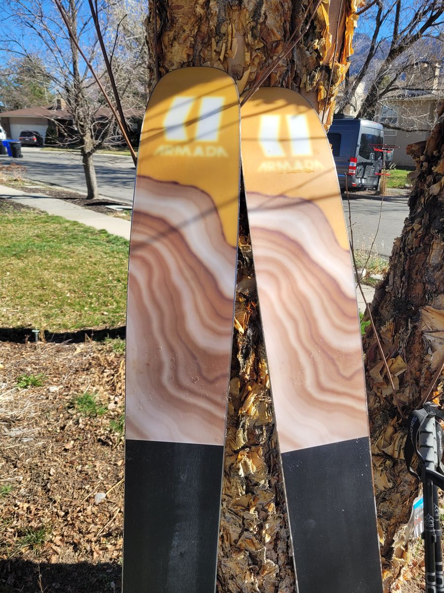 Description: Armada's Xrystal Mesh technology utilizes an Innegra Mesh insert in the core of the ski to increase dampness and maintain stability, giving you a smooth ride even while you're blasting through chunder. The hybrid wood core features a lighter wood in the tip and tail with denser wood underfoot to create a flex pattern that eases turn initiation and maneuverability so these skis won't ride you into the ground. (from Backcountry.com)