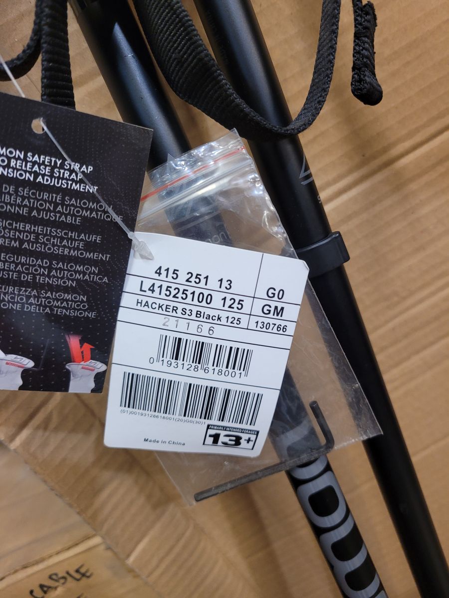 Solomon Hacker S3 ski poles, 125 cm length. Black. 2022 model.