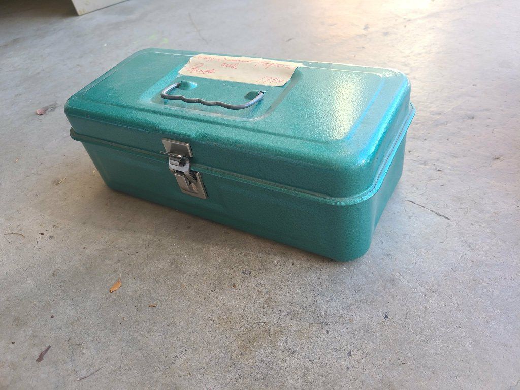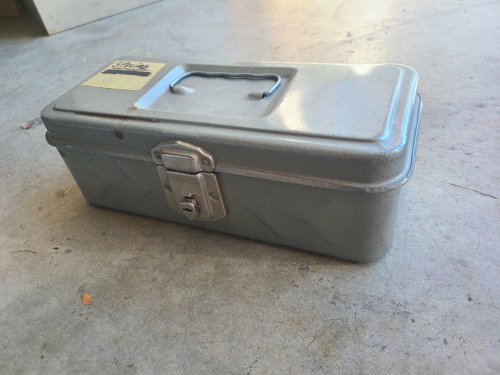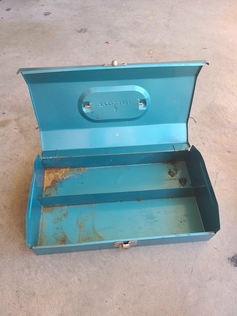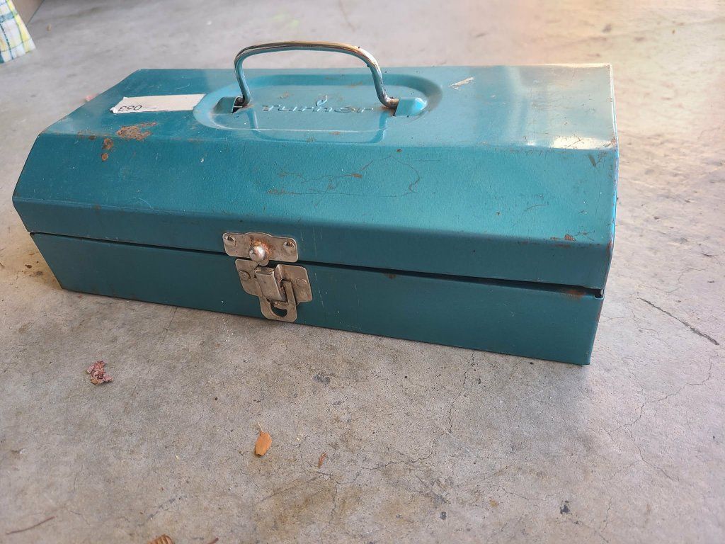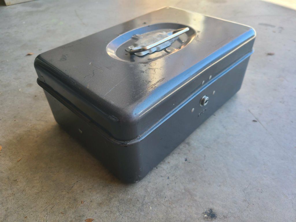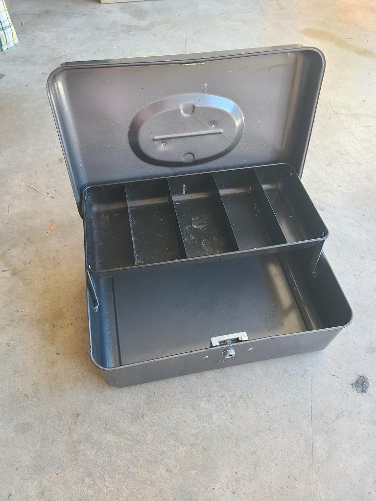 Vintage metal boxes. Toolbox, cash box, tackle box, etc
