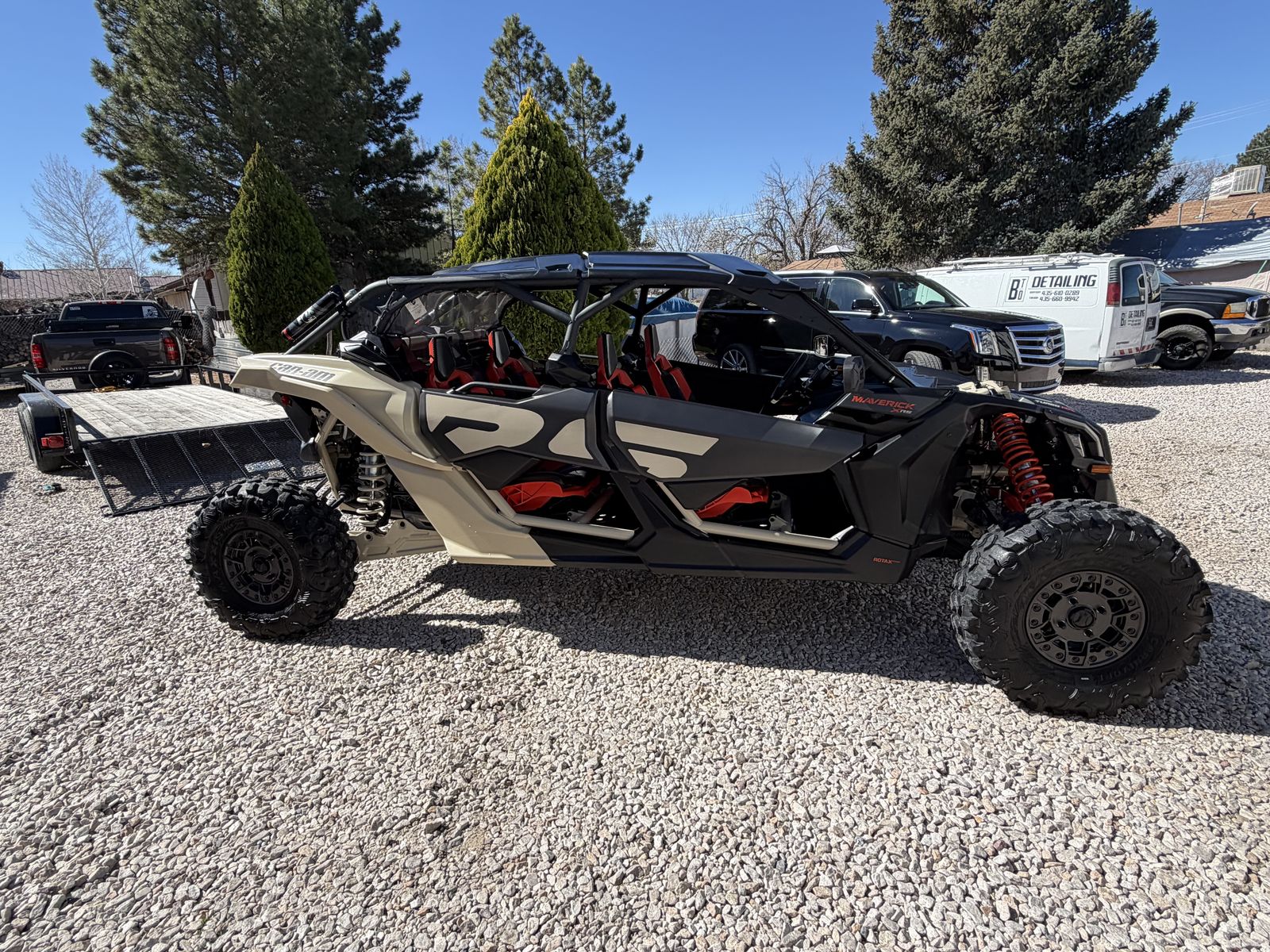 2023 Can-Am Maverick X3 MAXX rs TURBO RR with SMART-SHOX 72 suspension 4 seater. We don’t have the time to ride and hate to see this awesome side by side not being enjoyed. This side by side only has 616 miles on it. It has 200 horsepower, new battery, side view mirrors, Can-Am X3 accent street kit so it’s street legal, net protection, USA X3 windshield, . Only asking what we owe. Tread on tires is still excellent as well.