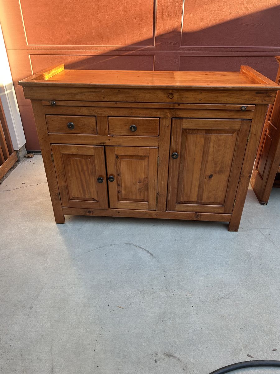VenmoNice hutch from Sundance. 6 feet tall. The top piece is 1 foot deep. The bottom section is 2 feet deep. The total piece 4’ 2” wide.