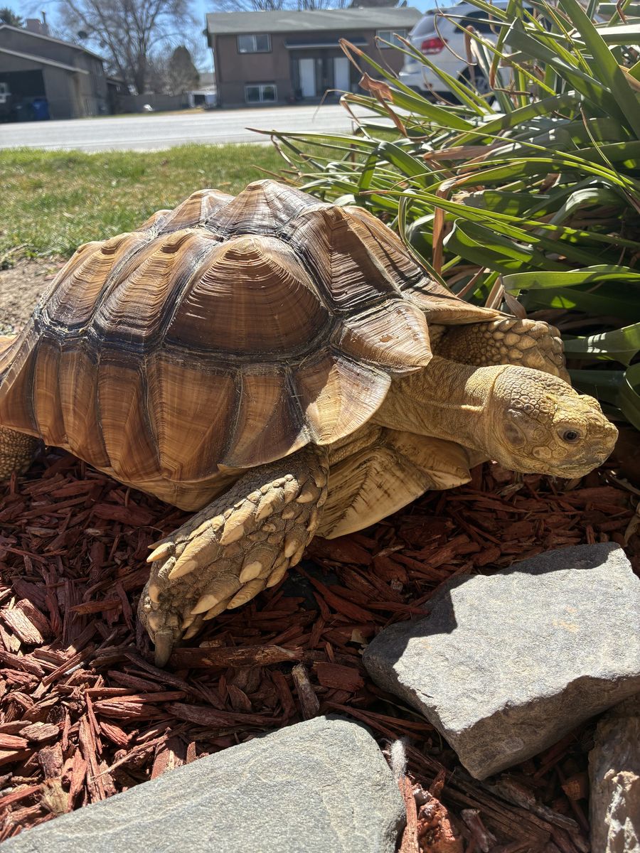 VenmoMale sulcata around 6 years old . He’s around 25-30 pounds . He loves to roam for an hour or two and then sleep under his lamp pretty much . Loves a good soak every couple of days . $250