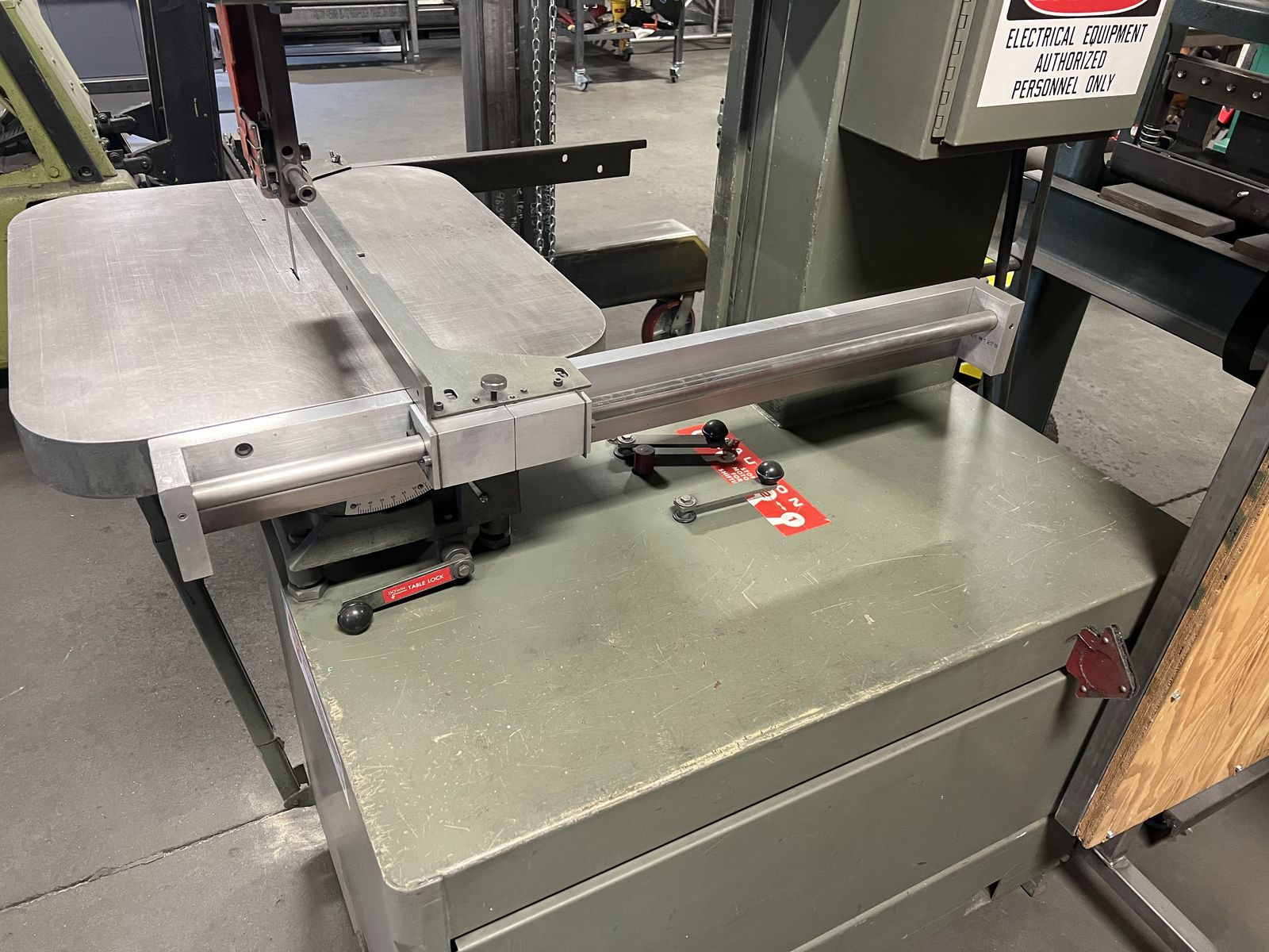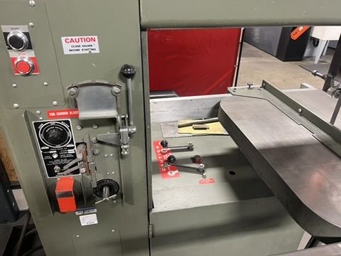Large Grob brand vertical bandsaw 24" opening. Optional blade welder from the factory (Never used it, light comes on) 175 1/2" blade. recently serviced the and cuts excellent.