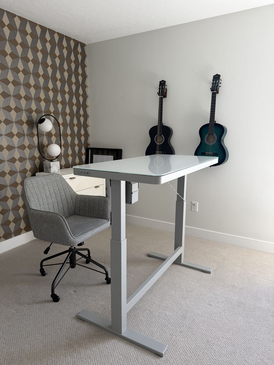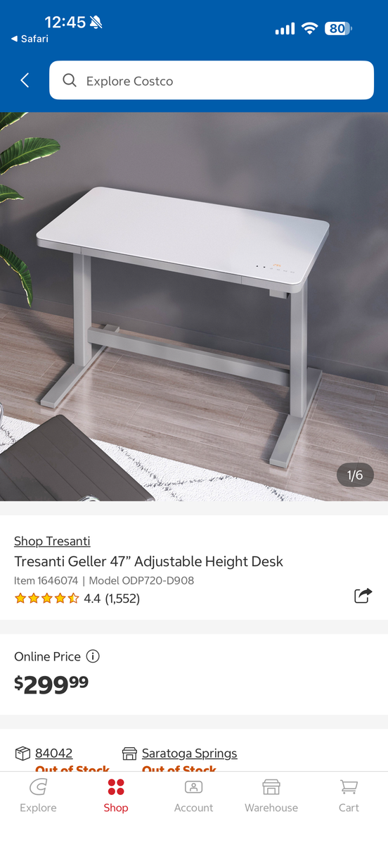 VenmoHigh quality standing office desk from Costco! Practically never used and has been sitting in this empty room. Works perfectly. Can take it apart so that it can easily fit into a car. Originally $300