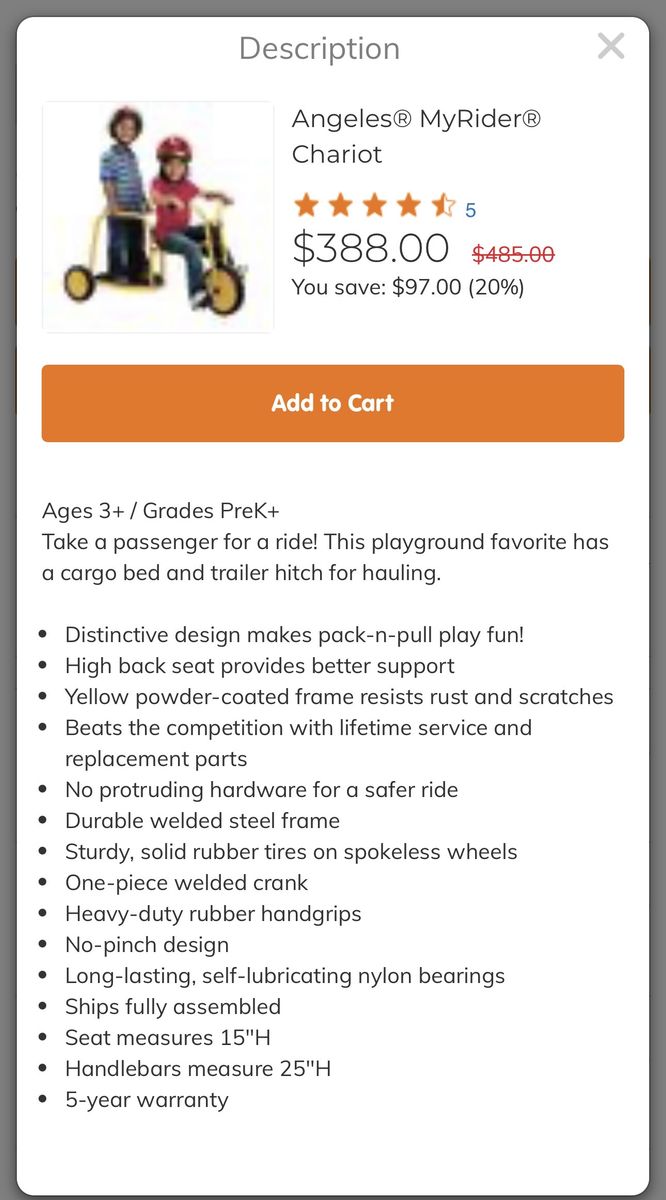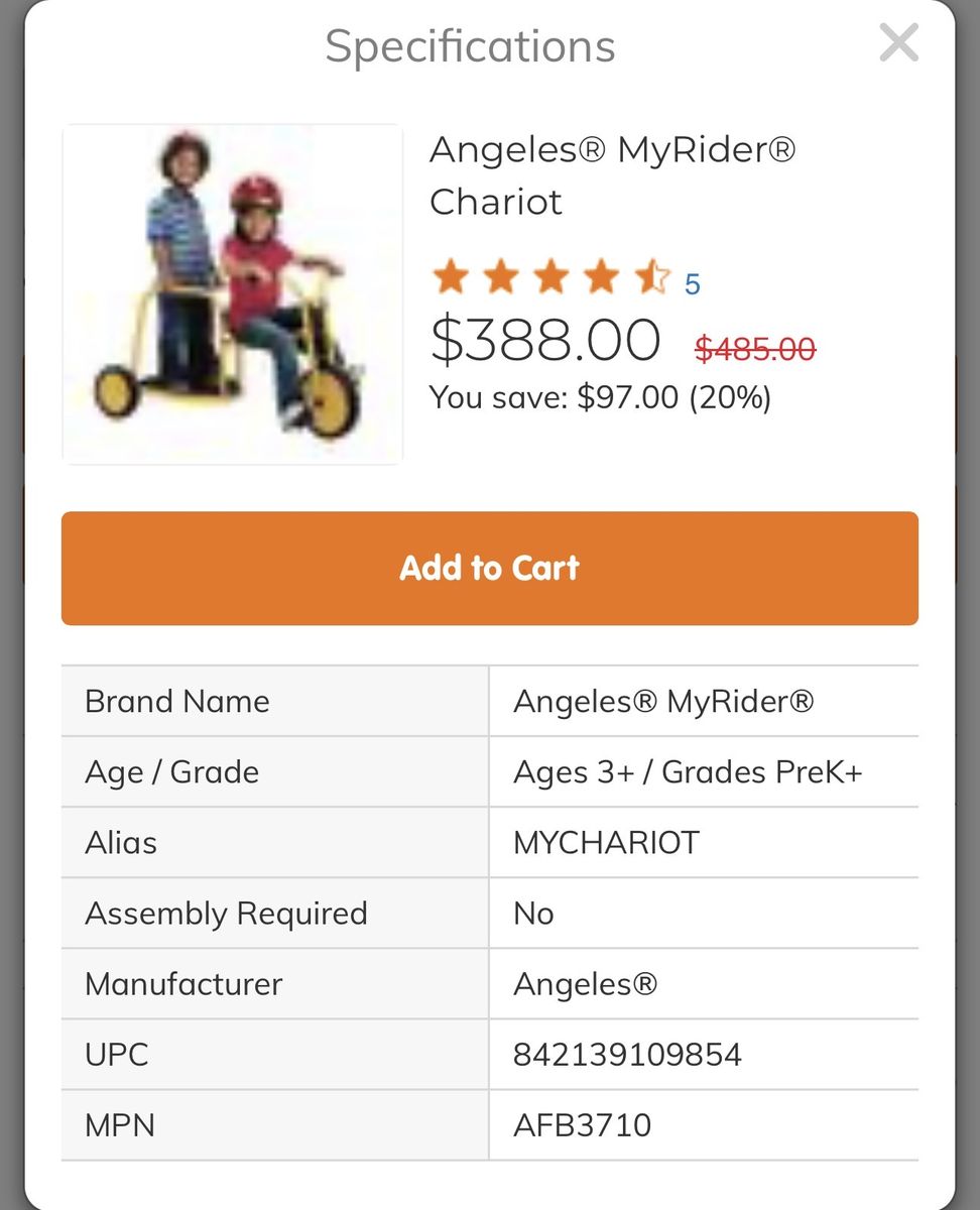 New Angeles MyRider Chariot Trike. 41824142 Great for preschools or daycares