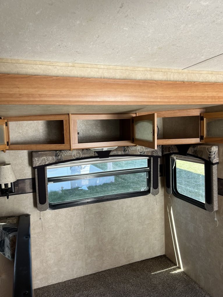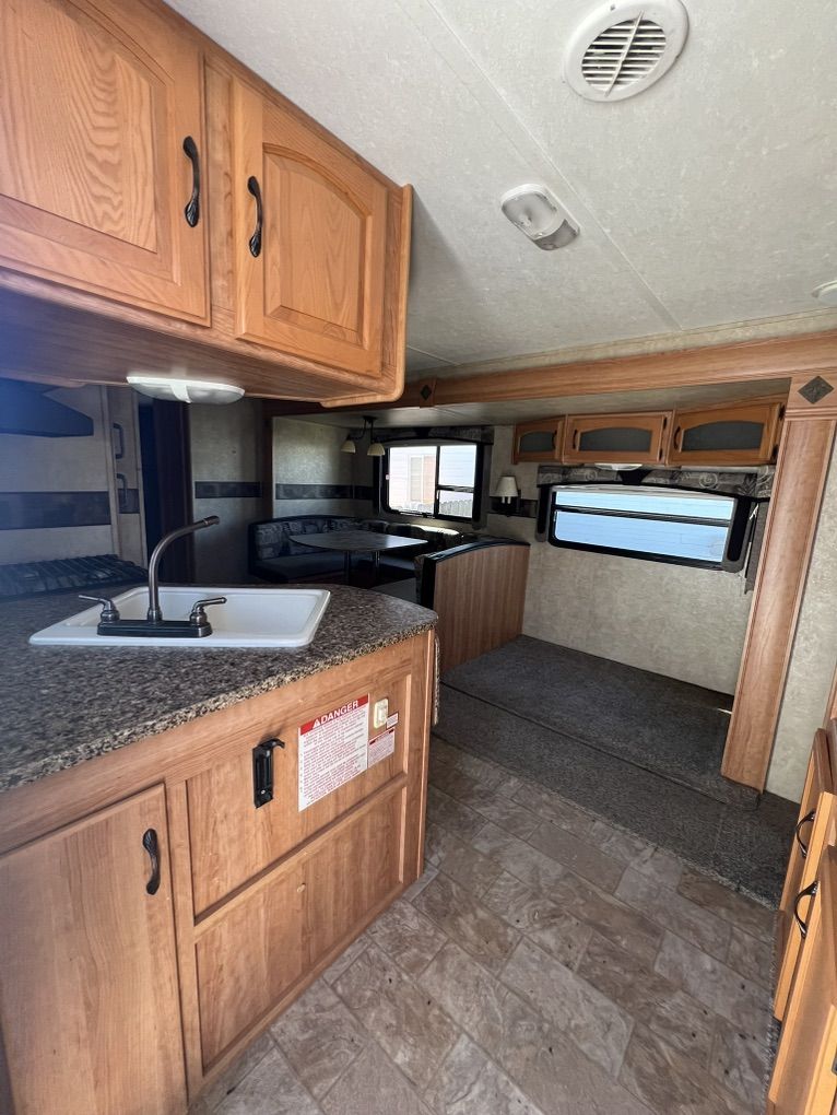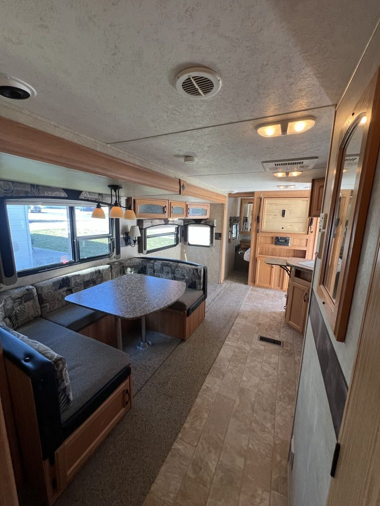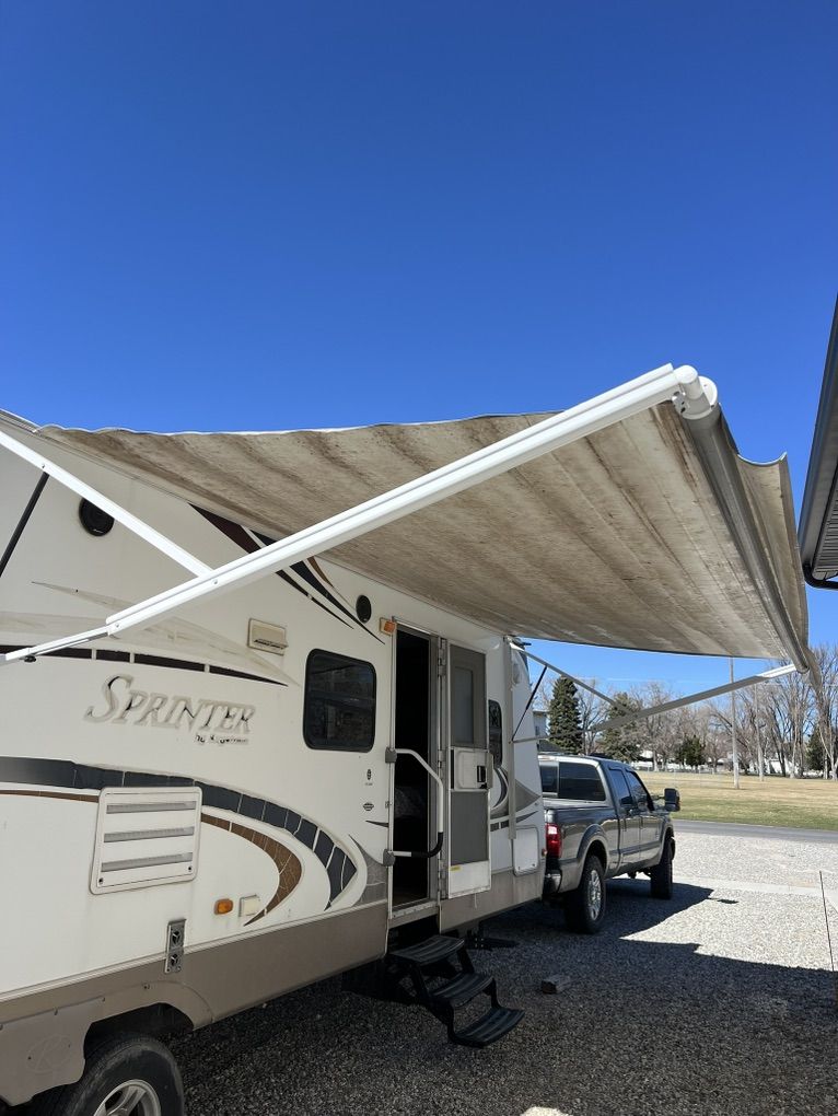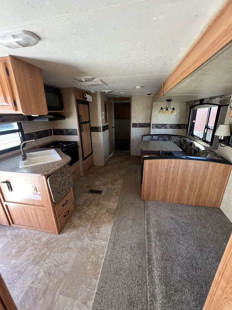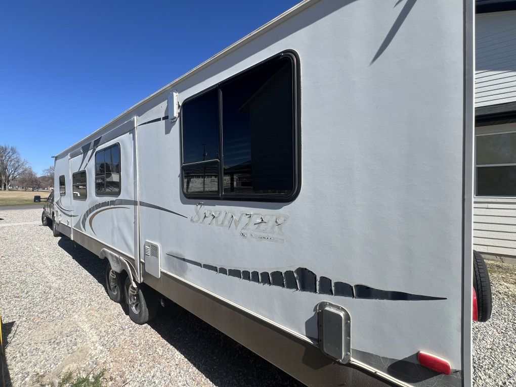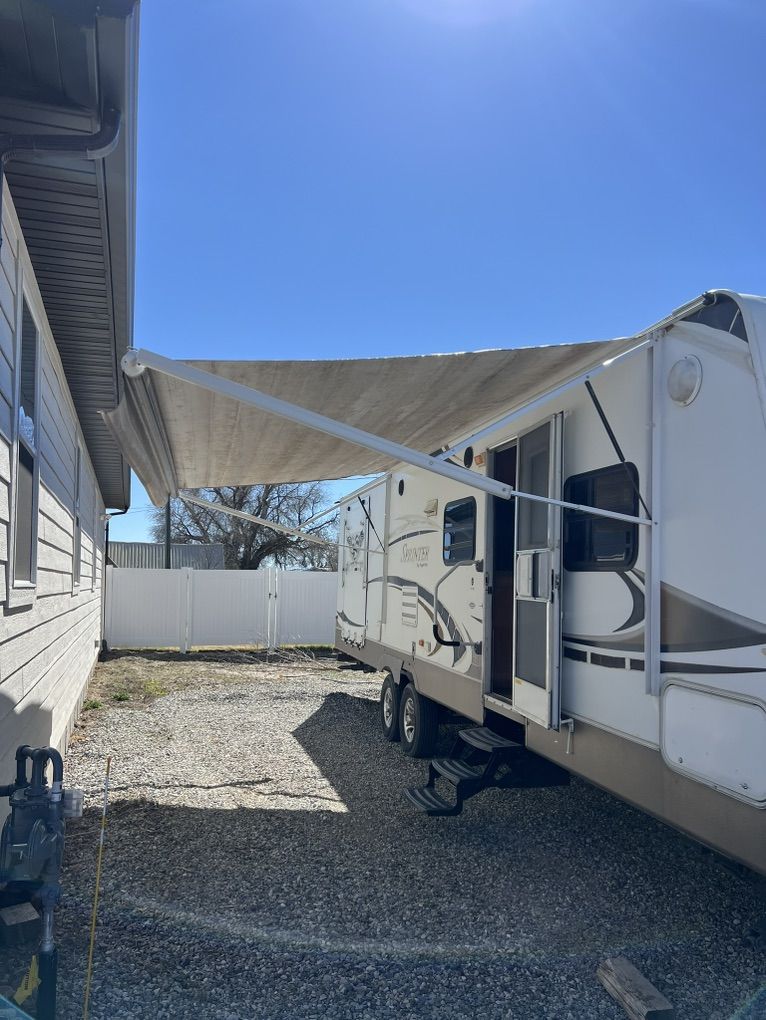 Spacious bumper pull toy hauler. 34’ including tongue, empty weight 7475lbs, capacity 2980 lbs. I have a weight distribution hitch I can include if you’re into that. Tires and batteries were new in fall of 2022. Has the oversized propane tanks. Large slide, tons of storage inside. Everything works as it should, water heater, pump, furnace, AC, stove/oven, and awning. The exterior is a bit delaminated on the front and back from glue failure. No leaks or water damage anywhere. Door to the bathroom is a little whacky, but fully functioning. One of the blinds is torn from a previous owners dog. Random stain on the carpet from a case of soda that leaked. Solid rig! Worked great for our family, selling because we’re expecting another kid and probably won’t go camping much this year. 8,500 OBO text is best