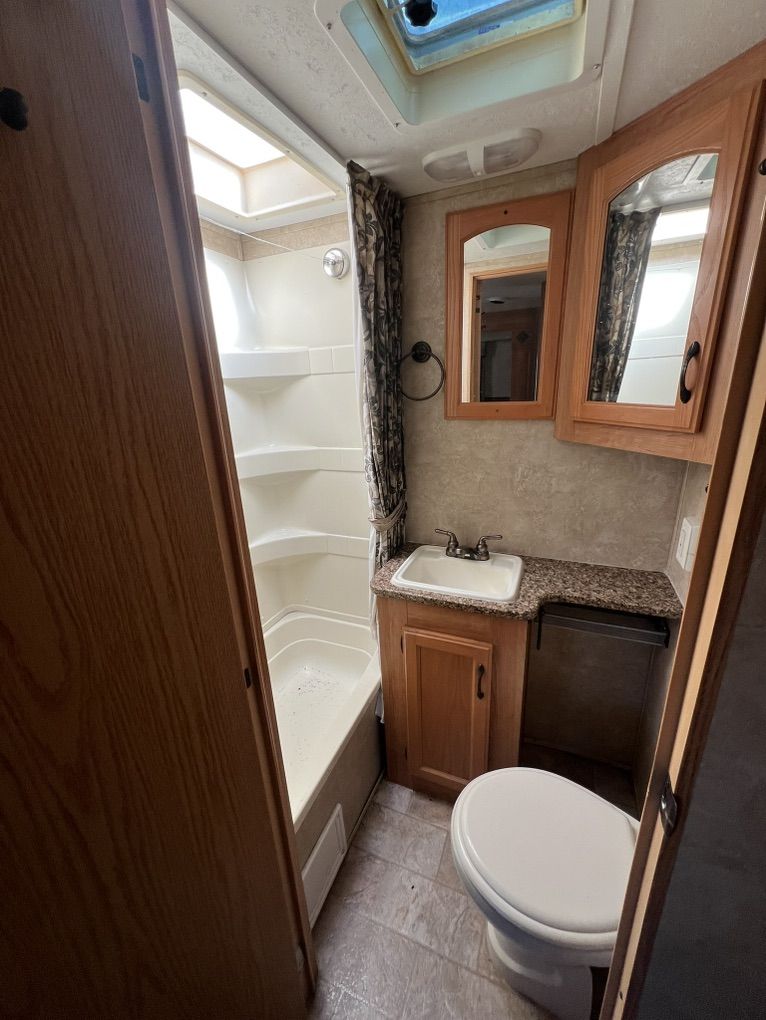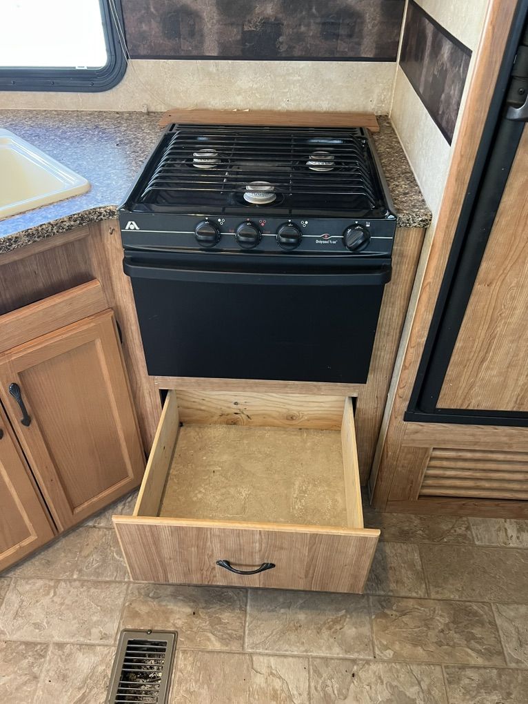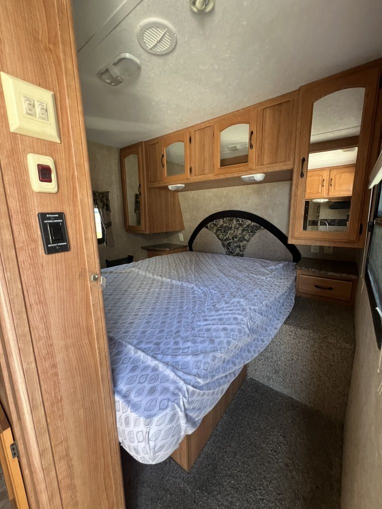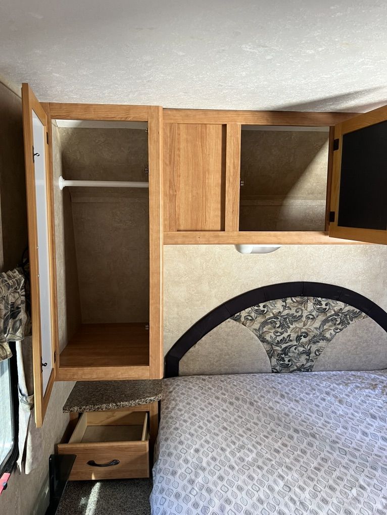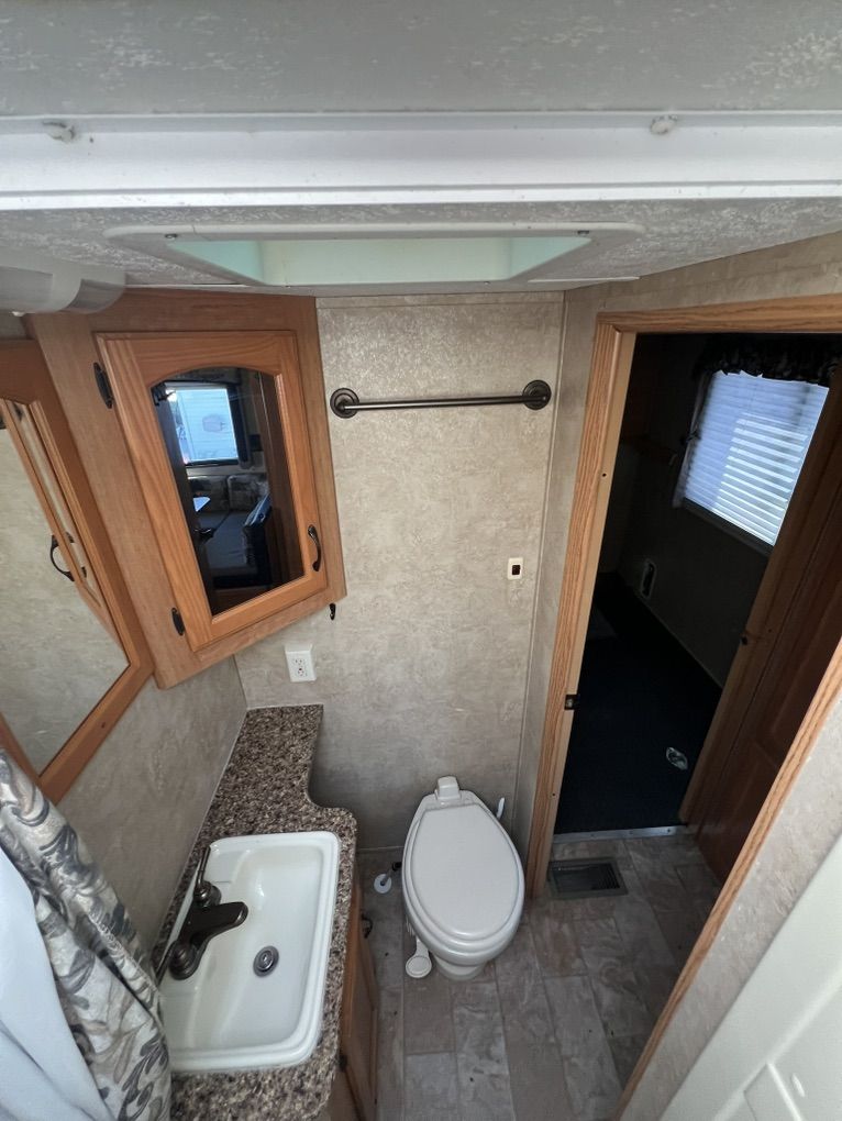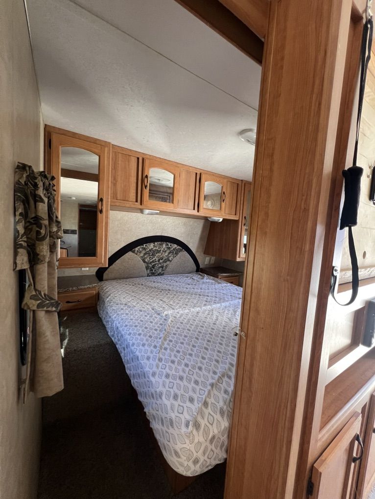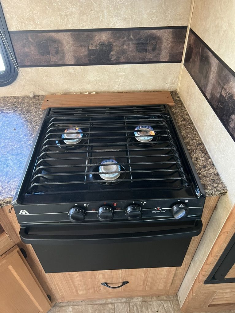 Spacious bumper pull toy hauler. 34’ including tongue, empty weight 7475lbs, capacity 2980 lbs. I have a weight distribution hitch I can include if you’re into that. Tires and batteries were new in fall of 2022. Has the oversized propane tanks. Large slide, tons of storage inside. Everything works as it should, water heater, pump, furnace, AC, stove/oven, and awning. The exterior is a bit delaminated on the front and back from glue failure. No leaks or water damage anywhere. Door to the bathroom is a little whacky, but fully functioning. One of the blinds is torn from a previous owners dog. Random stain on the carpet from a case of soda that leaked. Solid rig! Worked great for our family, selling because we’re expecting another kid and probably won’t go camping much this year. 8,500 OBO text is best