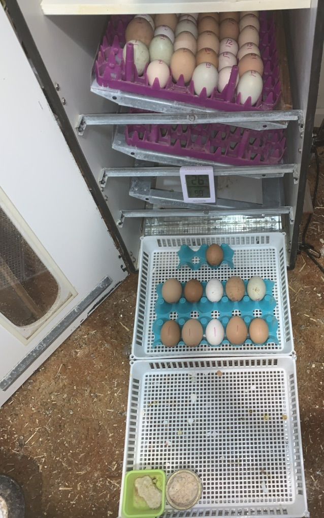 If a hen starts setting after the first batch enters the Incubator, we often share about 10 eggs on day 19 from the incubator. That is when turning stops and the hen starts conversations by talking to the chicks.