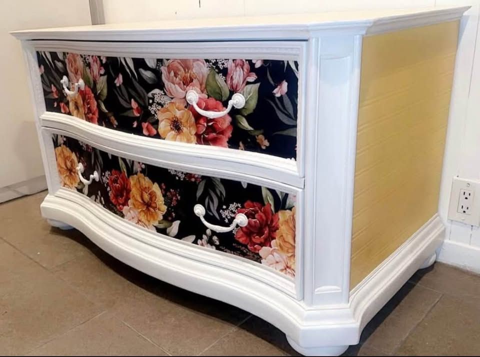 This beautiful piece of furniture can be a dresser, entertainment center, or a window seat with throw pillows on top. This is the perfect size top for a window seat. The original piece is a vintage Forbidden City brand. (And use to be the bottom half of big armoire that’s been transformed into a secret cool hideaway reading nook with all the extras so they can be sold together as one piece or two ) The depth is larger than the average dresser with large deep drawers. There’s so many places you could use it. It’s bright beautiful and high end quality furniture. The drawers are large and able to hold a lot of stuff. I will include the measurements for the inside of the drawers to give you an idea just how much they hold. This is heavy and will need two people to pick it up, it’s newly refurbished/upcycled Measurements are below.