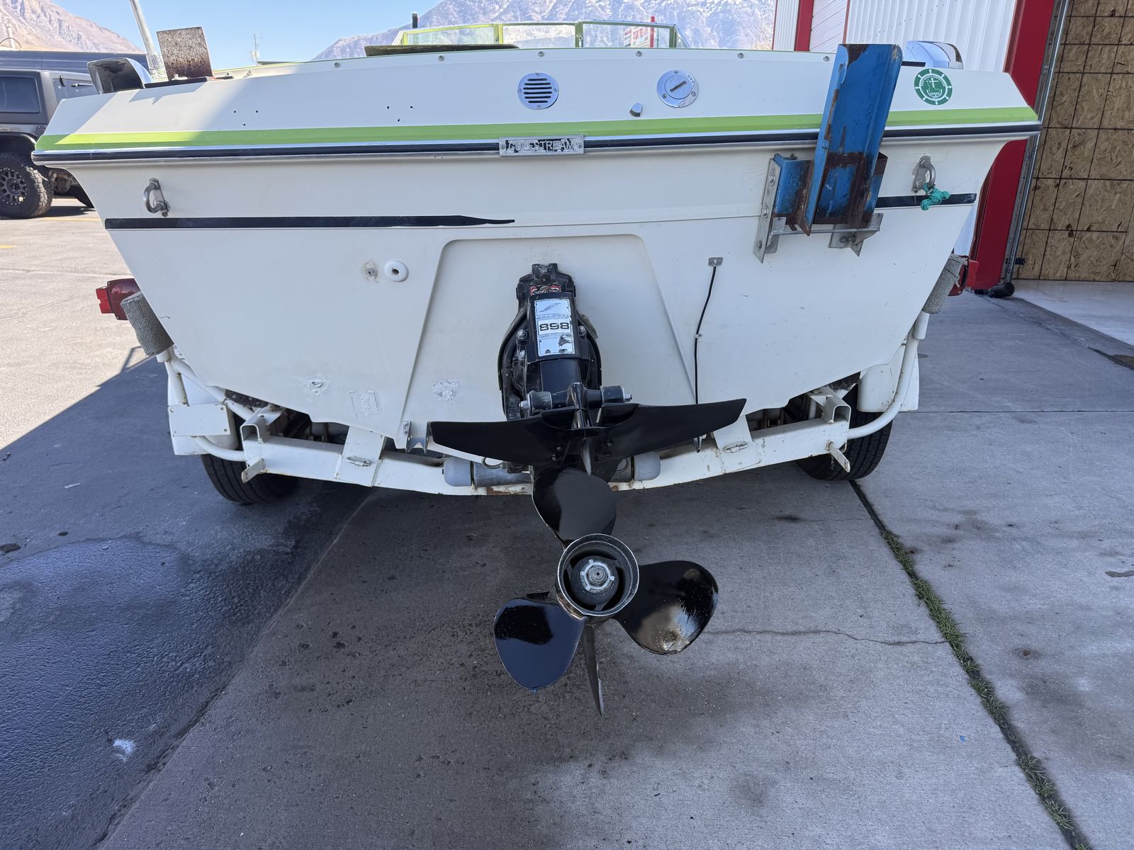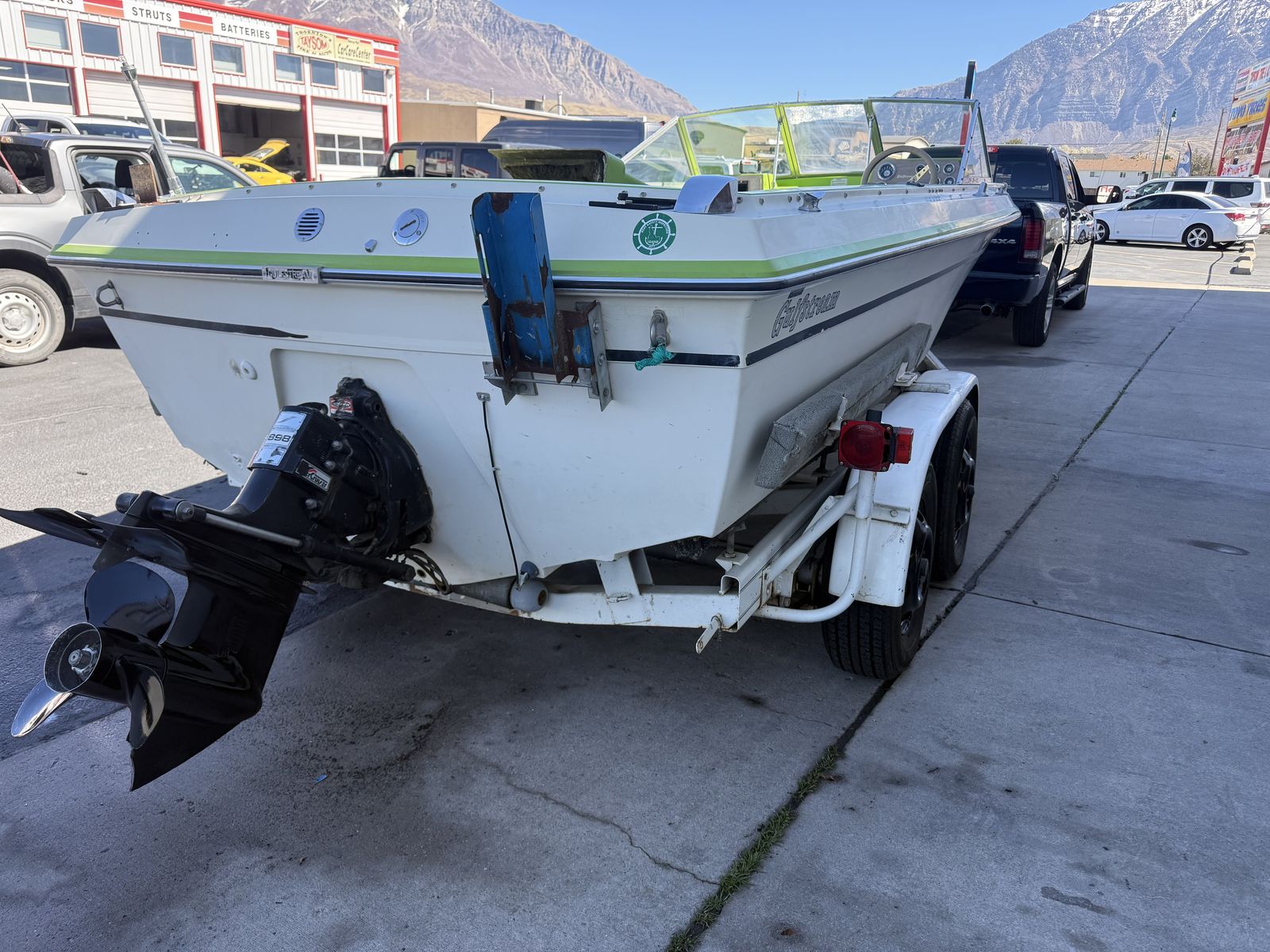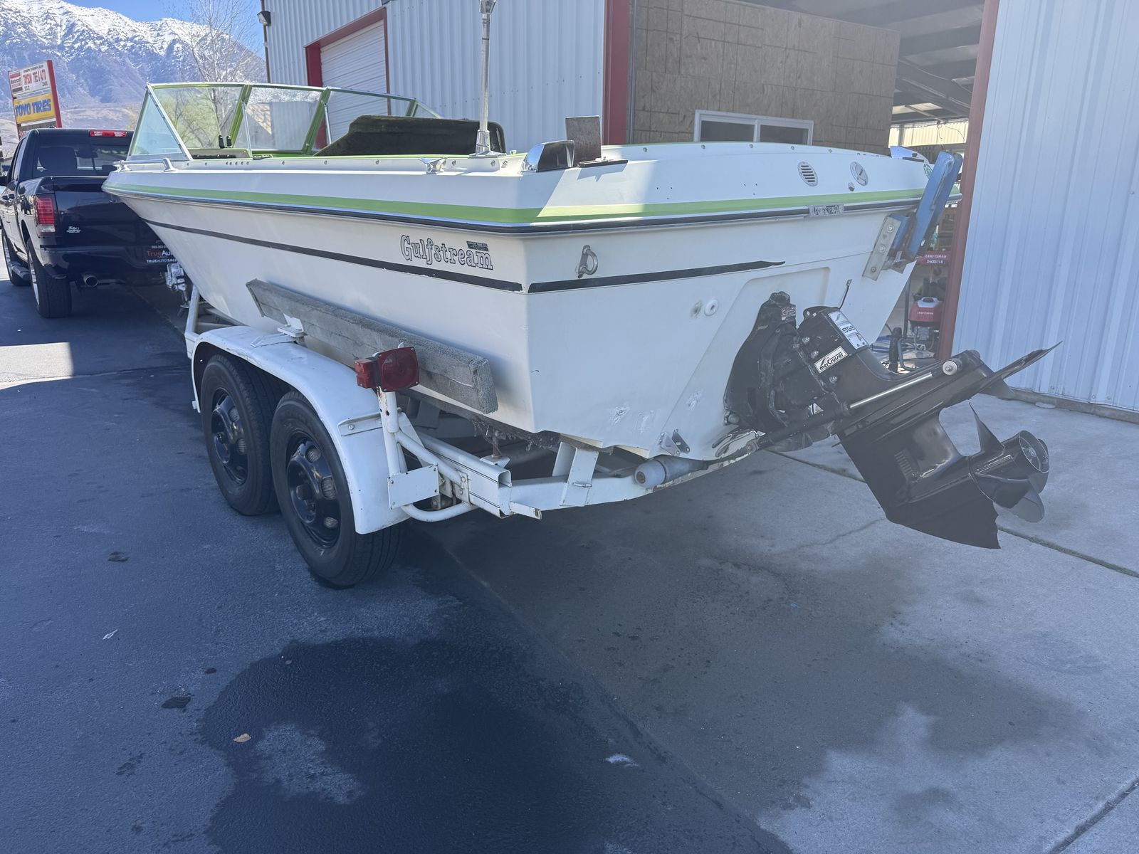 ApplePayBeautiful early 80s Gulfstream Boat. All the gauges work. Just changed tires and bearings. Brand new winch. Heavy duty random axle trailer. Motor fires right up. Haven’t taken it on the water yet. But it was registered last year and been sitting sense. This is 20 ft long. Should be a good fishing boat or just to hangout at the lake kind of boat. As is but seems to be an awesome little boat OBO