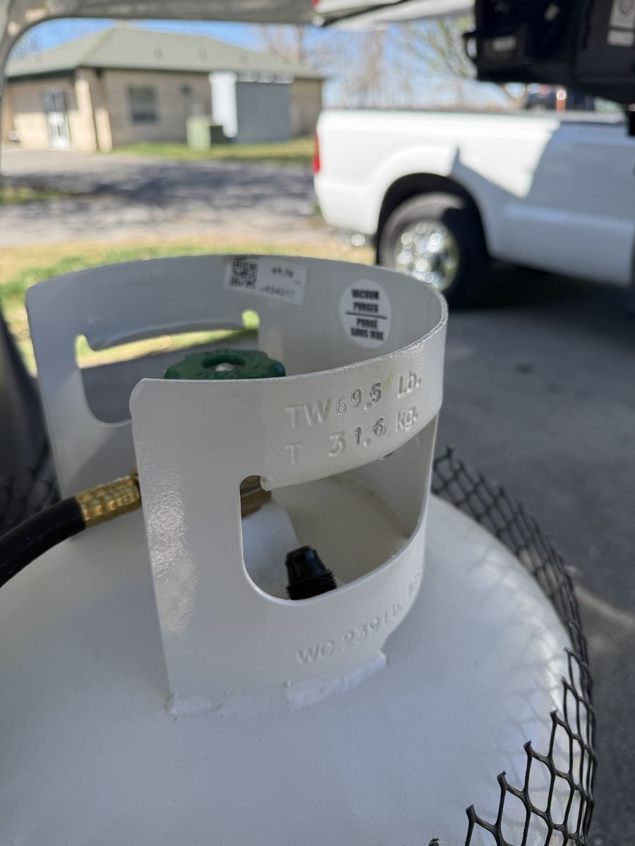 ZelleFlame King 100 lb, 4' tall, propane tank. Used for only 2 months this winter. Extra long hose can be purchased separately.