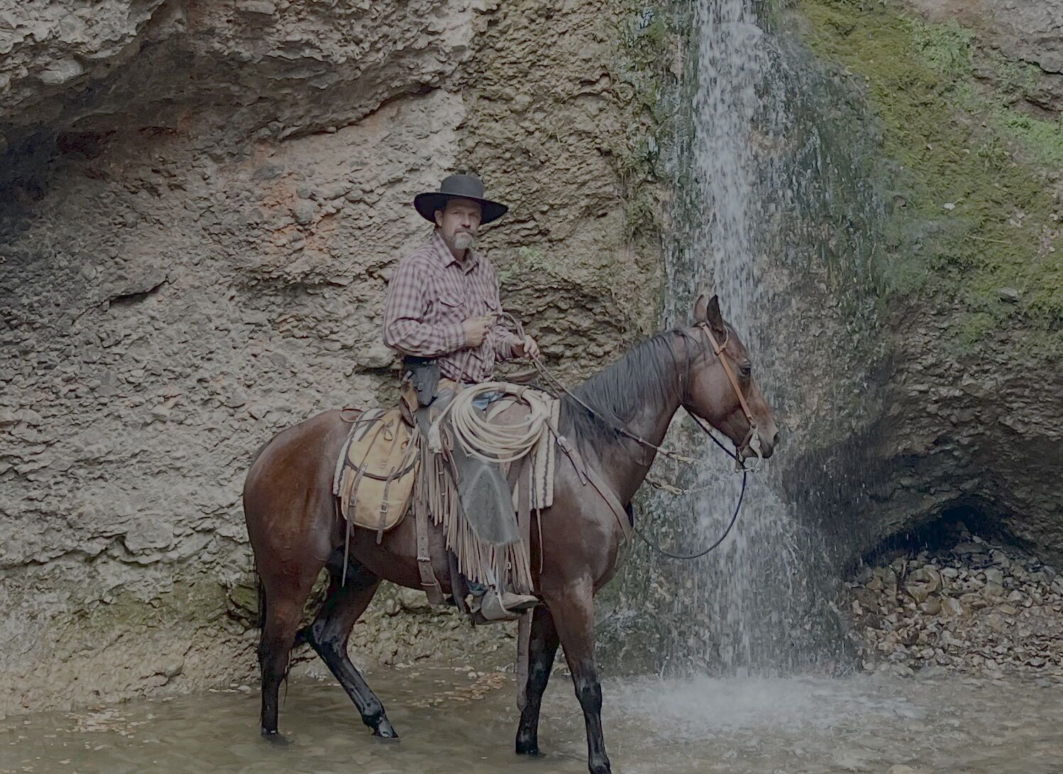 -Crosses water like a champ -will stand tied all day -hobbles -gathered a ton of cows -run him hard in the desert -20/30 mile days with lots of trotting -branding (draggin a calf) - tied off to a number of cows -search and rescue -light team roping -buffalo roundup (multiple times) -camped / ridden near mustangs. -Three TV / movie sets