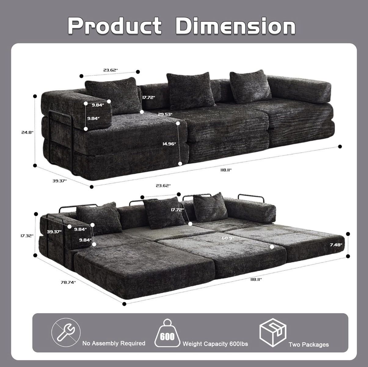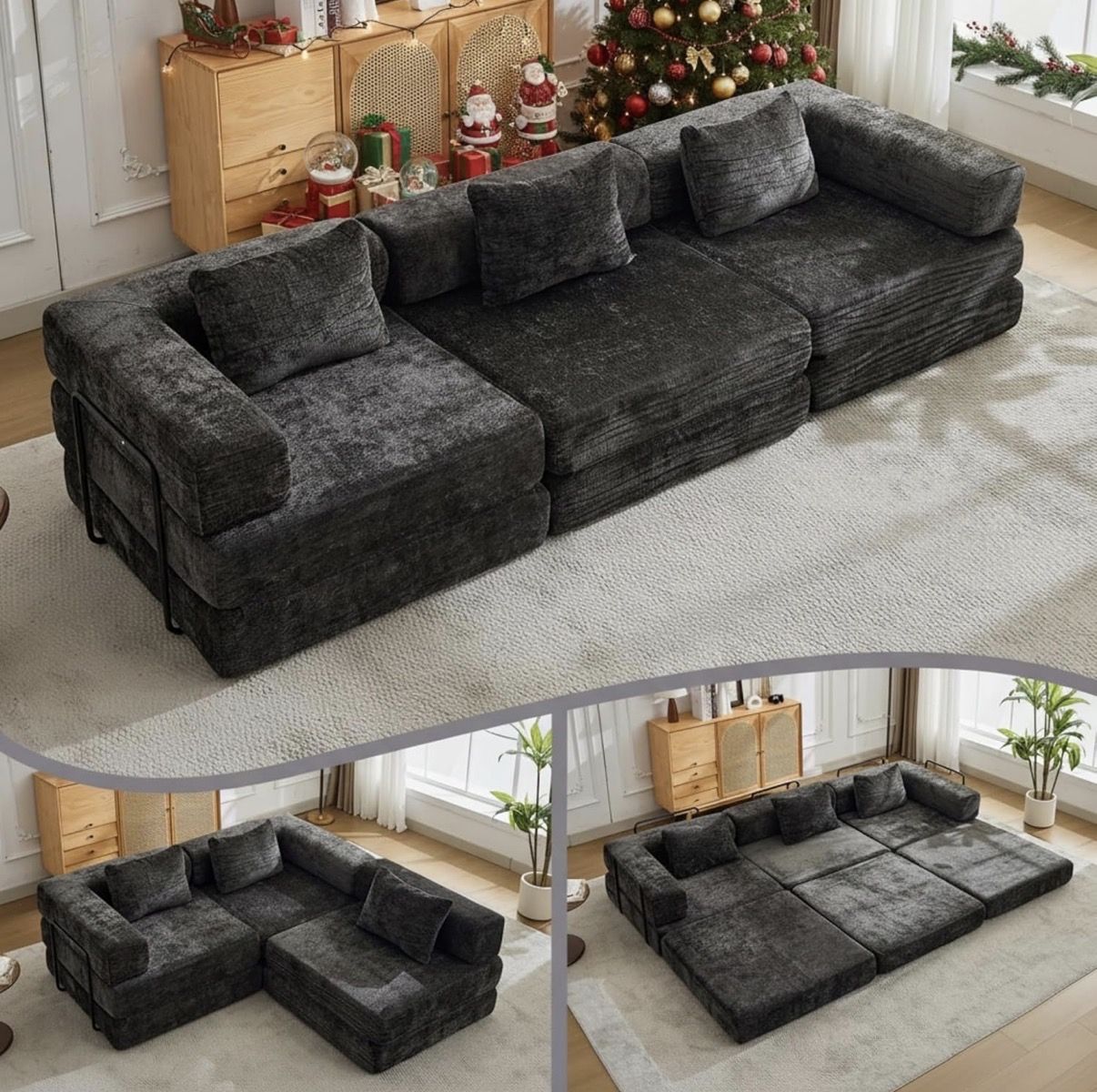 VenmoI have this black boneless couch available. It has multiple different configuration options (see the model example and the dimensions in the photos). It comes with three pillows as well (not pictured.) Message for more details or if you’re interested. Local pickup only.