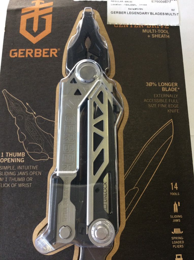 Gerber Center Drive multi tool for sale.Center-axis bit driver,torque and rotation of a genuine screwdriver.30% longer blade,1 thumb opening.Includes sheath.Asking 85.00. 1946 west 5600 south Roy, Utah. 801-776-1122. #E75009877