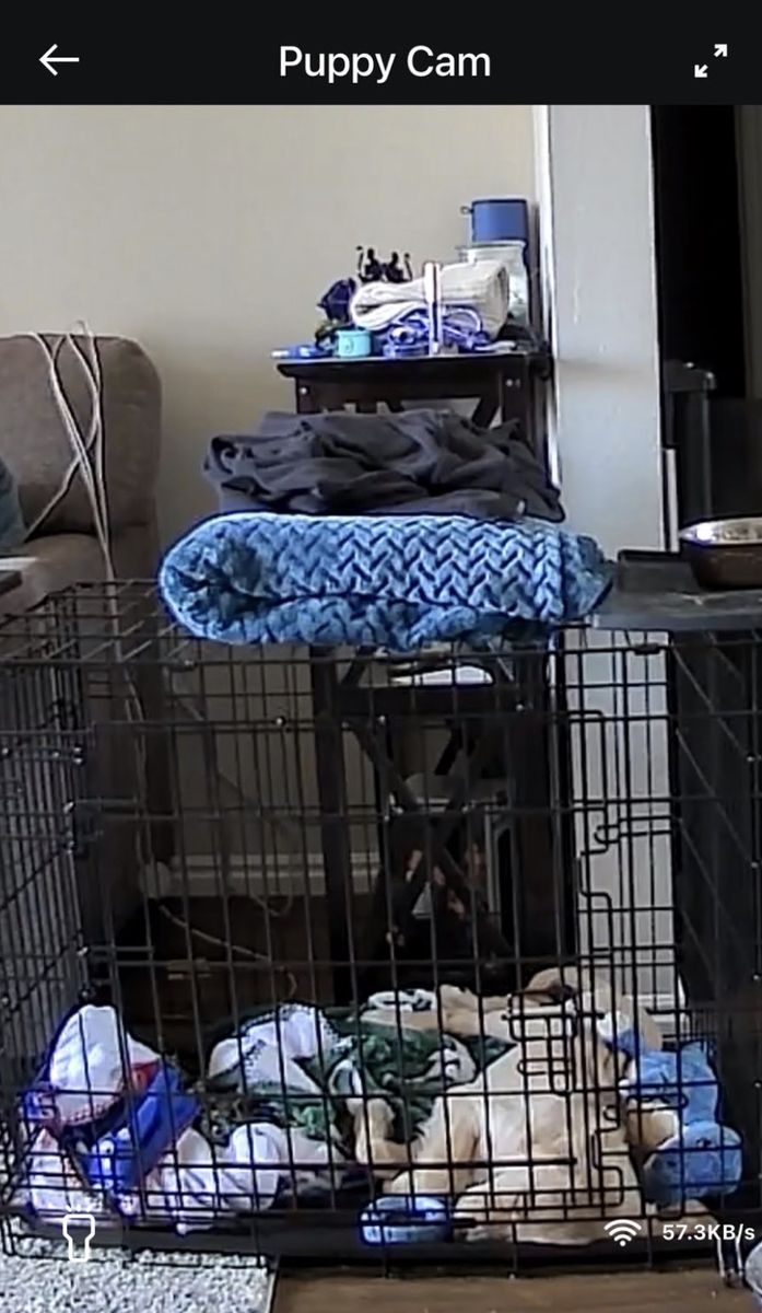 This crate was only used indoors as a bedtime crate for one puppy. It's been vacuumed, and thoroughly sanitized / cleaned.