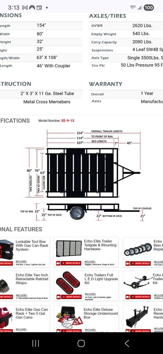 Modified echo trailer. This trailer has a 3500 lb axle and electric brakes with a tongue box. Title in hand. 2600$ cash.