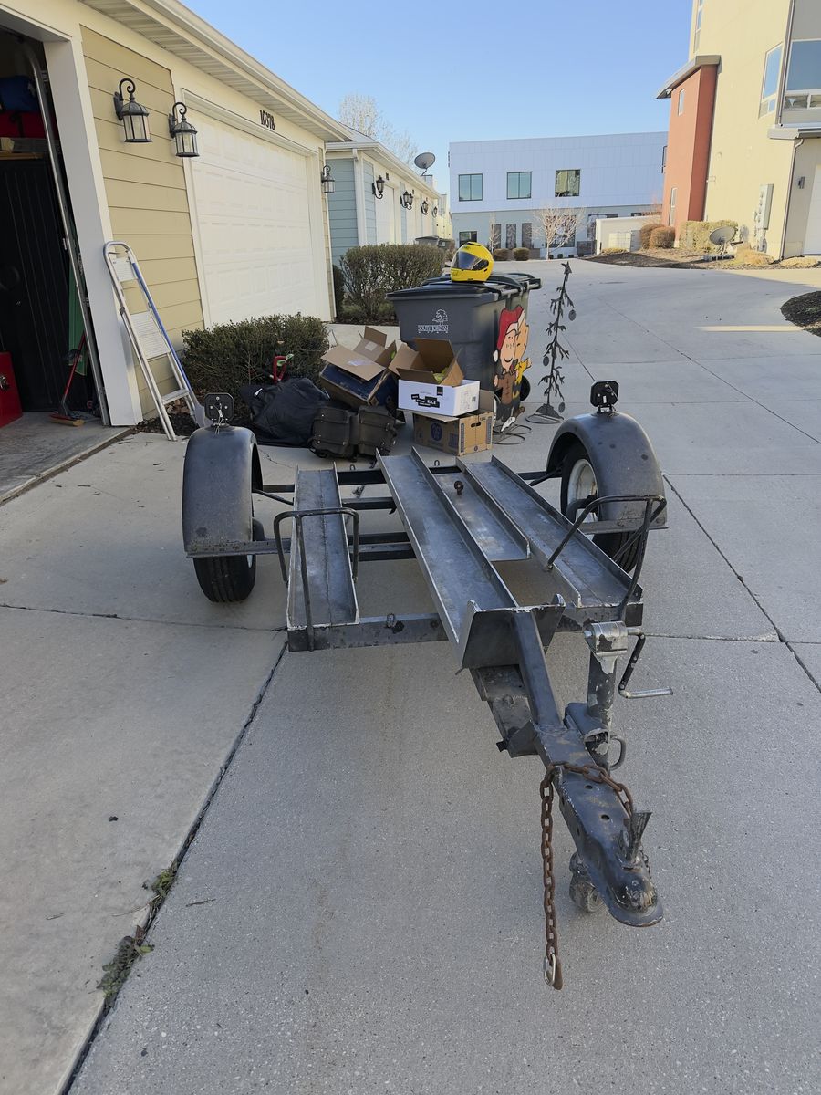 Very clean, lightweight motorcycle trailer in excellent condition. Built specifically for hauling motorcycles with integrated rails for secure transport.