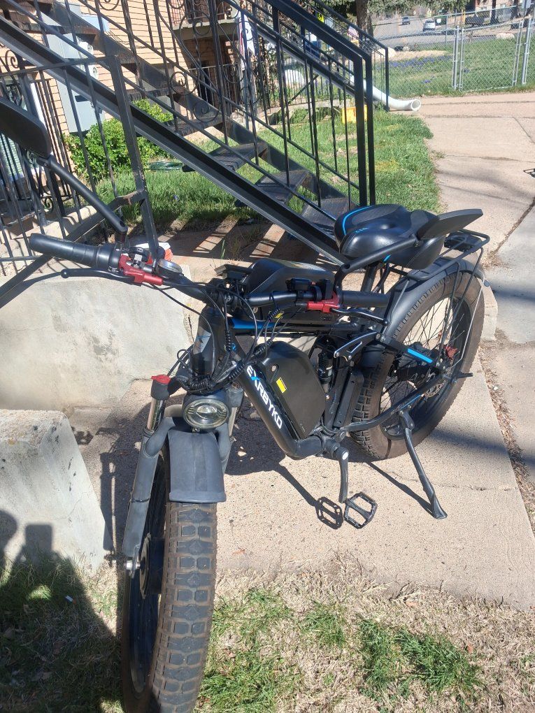 3000w Dual Motor Dual Battery Ebike. Comes With 4 Batteries 52v 23amp. Fat Bot Seat . Alarm System Brake lights turn signals. Brand New 180 Hydraulic Brake System. New Derailer. 7 Speed. Bike is Garentead to Go Max Speed 35mph. Has a 275 Pound Capacity Trailer and Hitch. Estimated Travel Distance with Dual Batteries 140 miles. This is a Powerful Ebike Not Recommended for Non Adaults.Bike Rack also available. Heavy Duty Motor Cycle Style Tires Puncher Resistant. Tanus inserts and Slime Protection. Has all the Extras For Free.