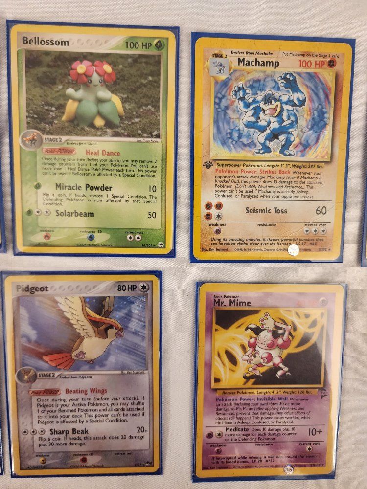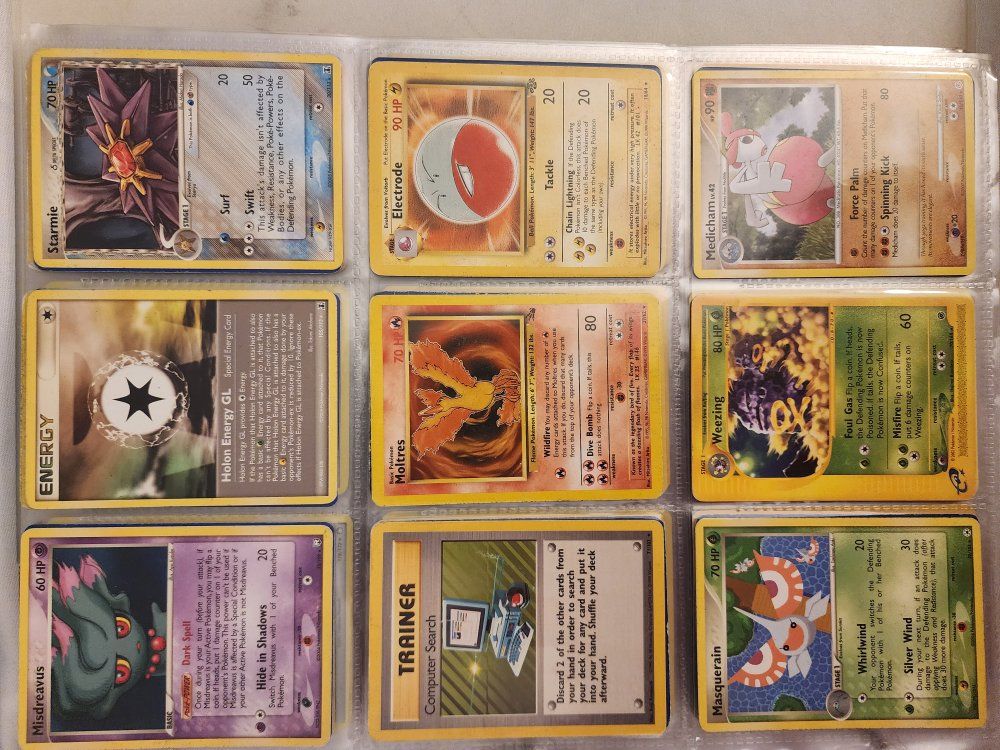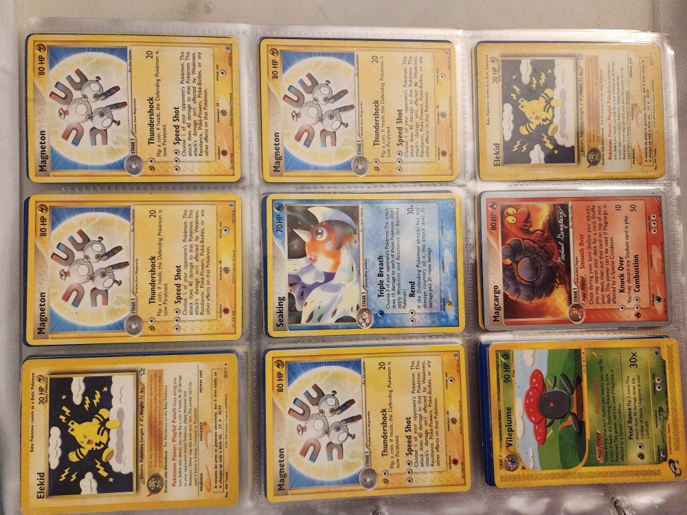 Cards from many different sets: base, base2, jungle, fossil, pok 3, pok 4, skyridge, aquapolis, expedition, and others. Lots of E reader cards.