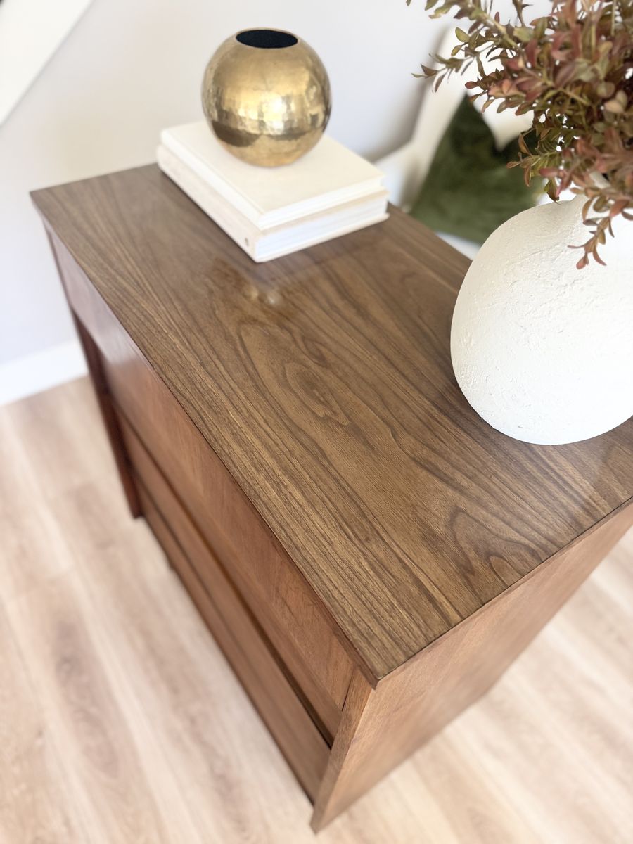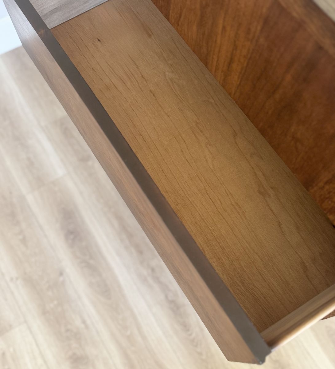 BEAUTIFUL | Vintage | Mid Century Modern | MCM | Dresser | Tall Boy | Chest of Drawers | Beautiful Wood Patina | Some Cosmetic Imperfections (Priced Accordingly) | Four Drawers | Dovetail | Wooden | Laminate Top | Contemporary | Minimalist | Style | Stylish | Bedroom | Furniture | Home Furnishings | Authentic | Ward Furniture | 1960’s