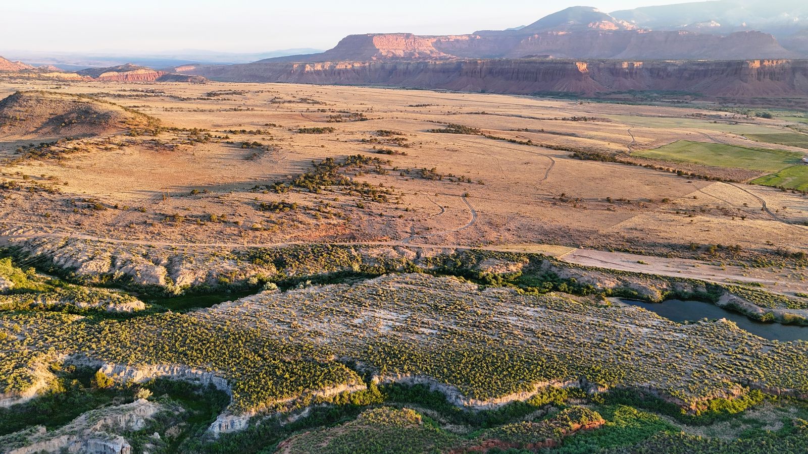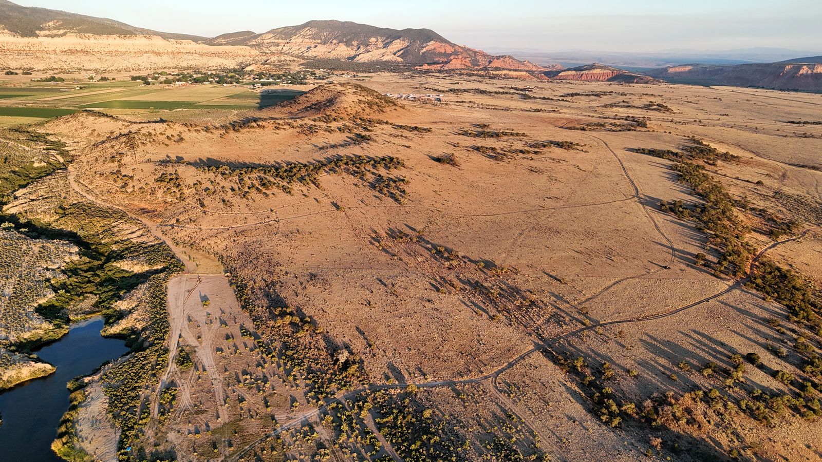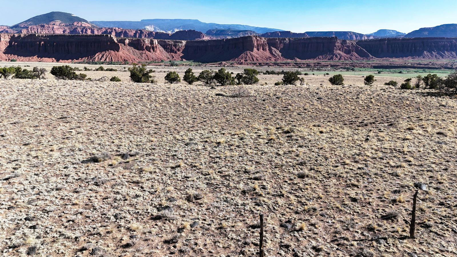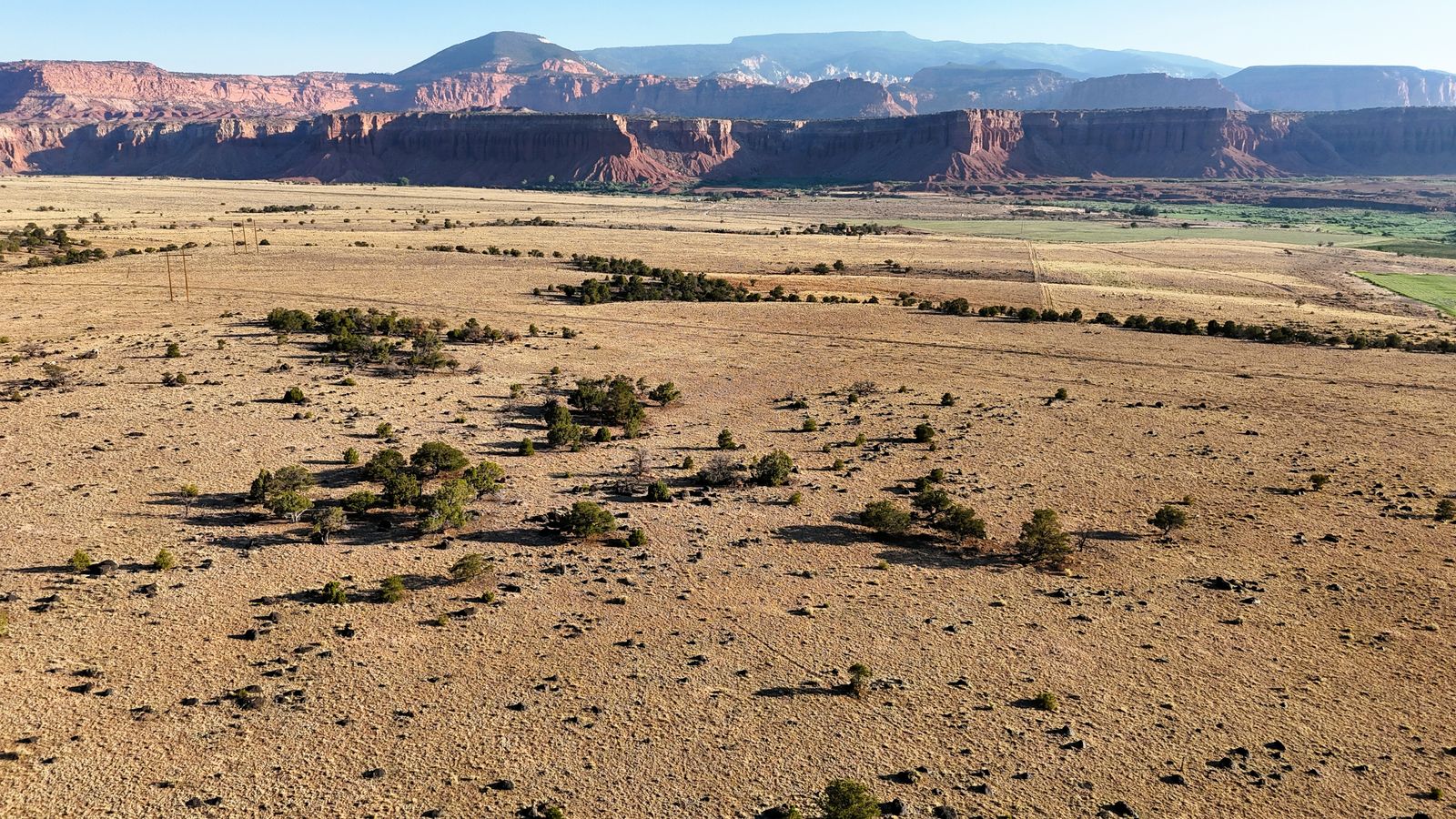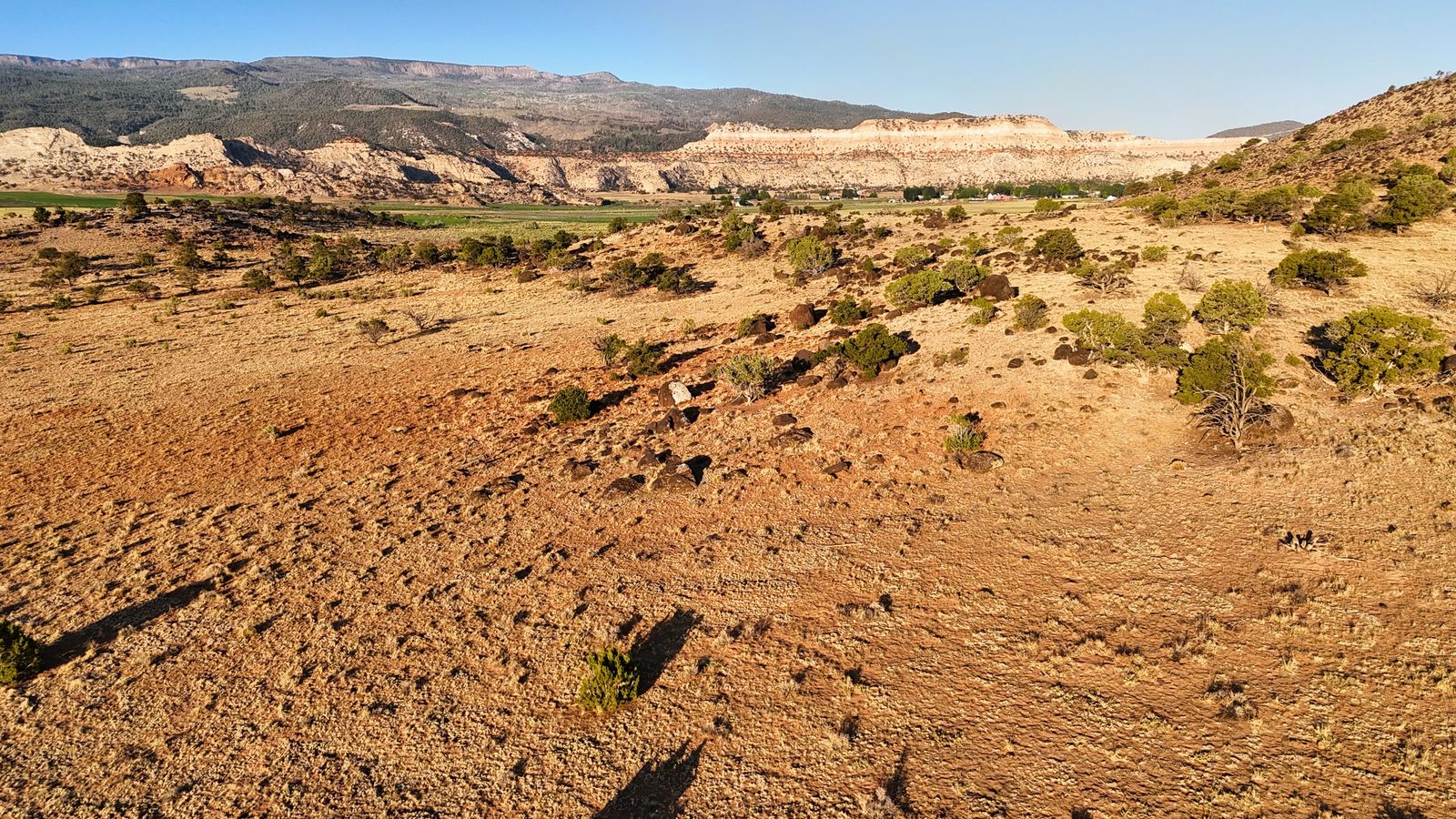 From multiple vantage points across the parcel, there are clear views of surrounding natural landmarks, including the Boulder Mountains to the south and the distinctive red rock formations and bluffs that characterize the region. The northern portion of the property drops approximately 100 feet, creating a natural edge where the Fremont River can be seen below. Along the southeastern boundary, views extend toward Cottonwood Creek, an area that supports local wildlife activity.