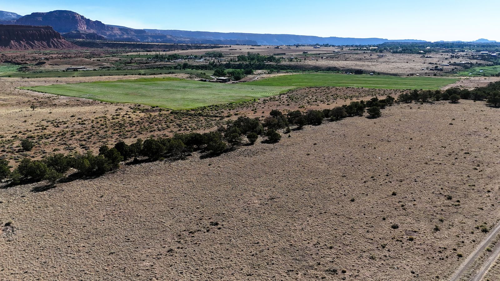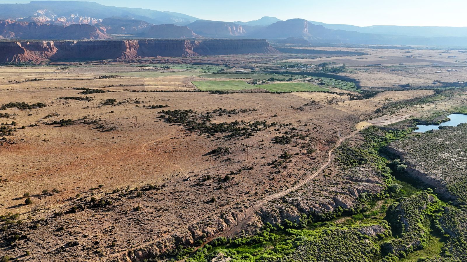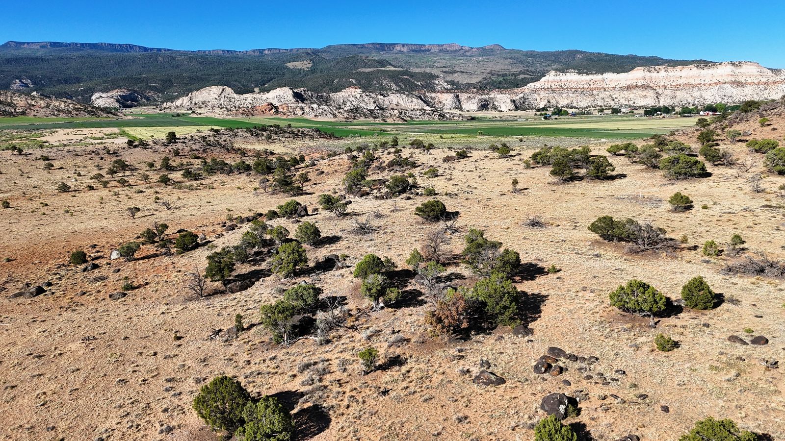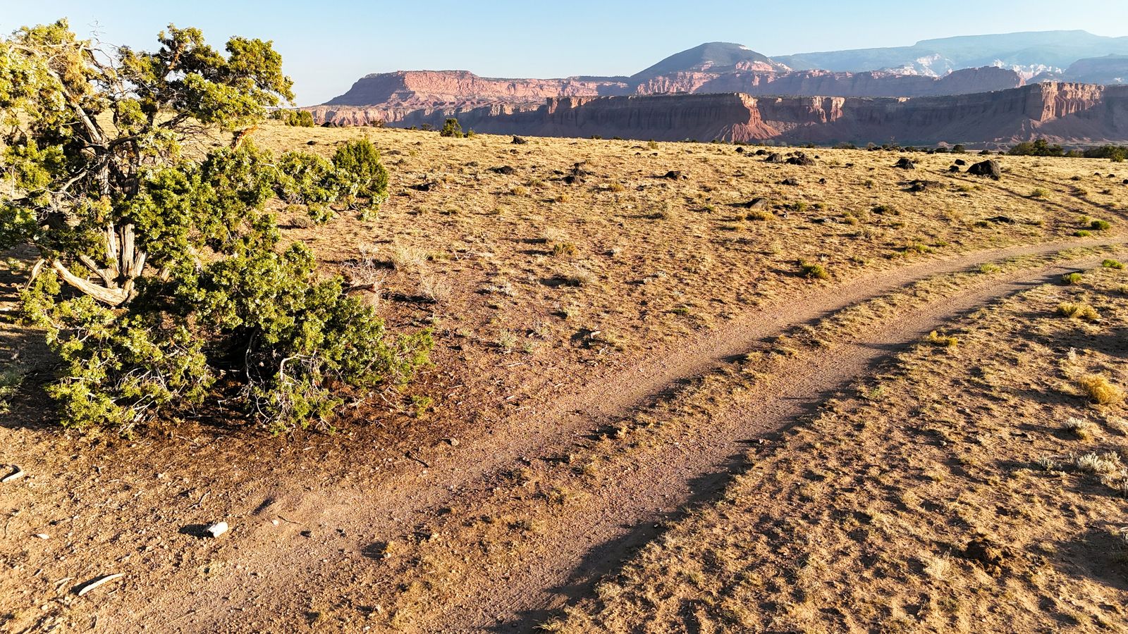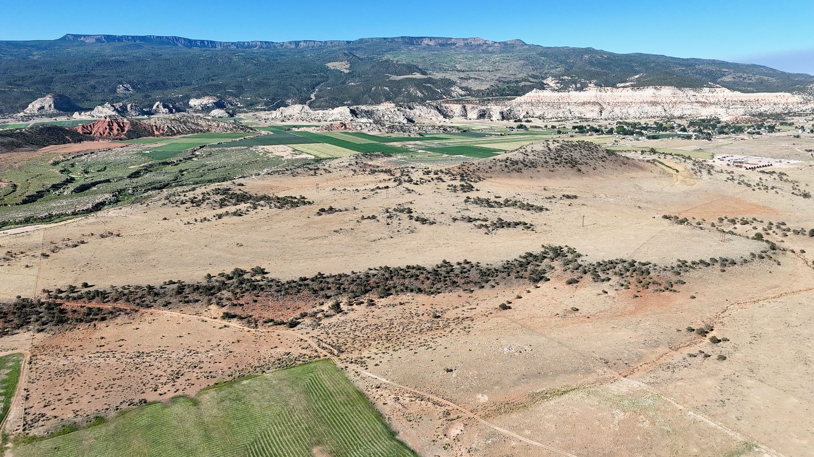 From multiple vantage points across the parcel, there are clear views of surrounding natural landmarks, including the Boulder Mountains to the south and the distinctive red rock formations and bluffs that characterize the region. The northern portion of the property drops approximately 100 feet, creating a natural edge where the Fremont River can be seen below. Along the southeastern boundary, views extend toward Cottonwood Creek, an area that supports local wildlife activity.