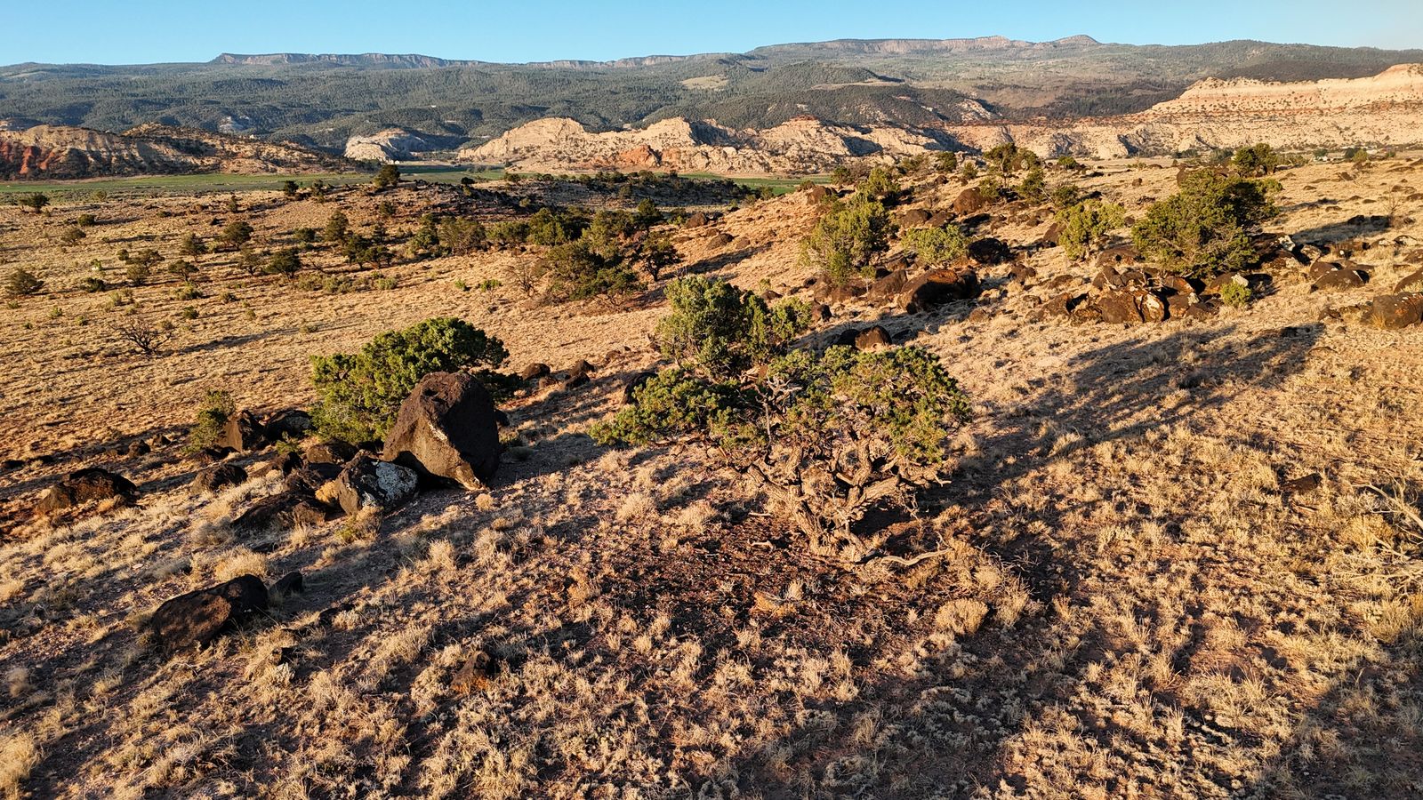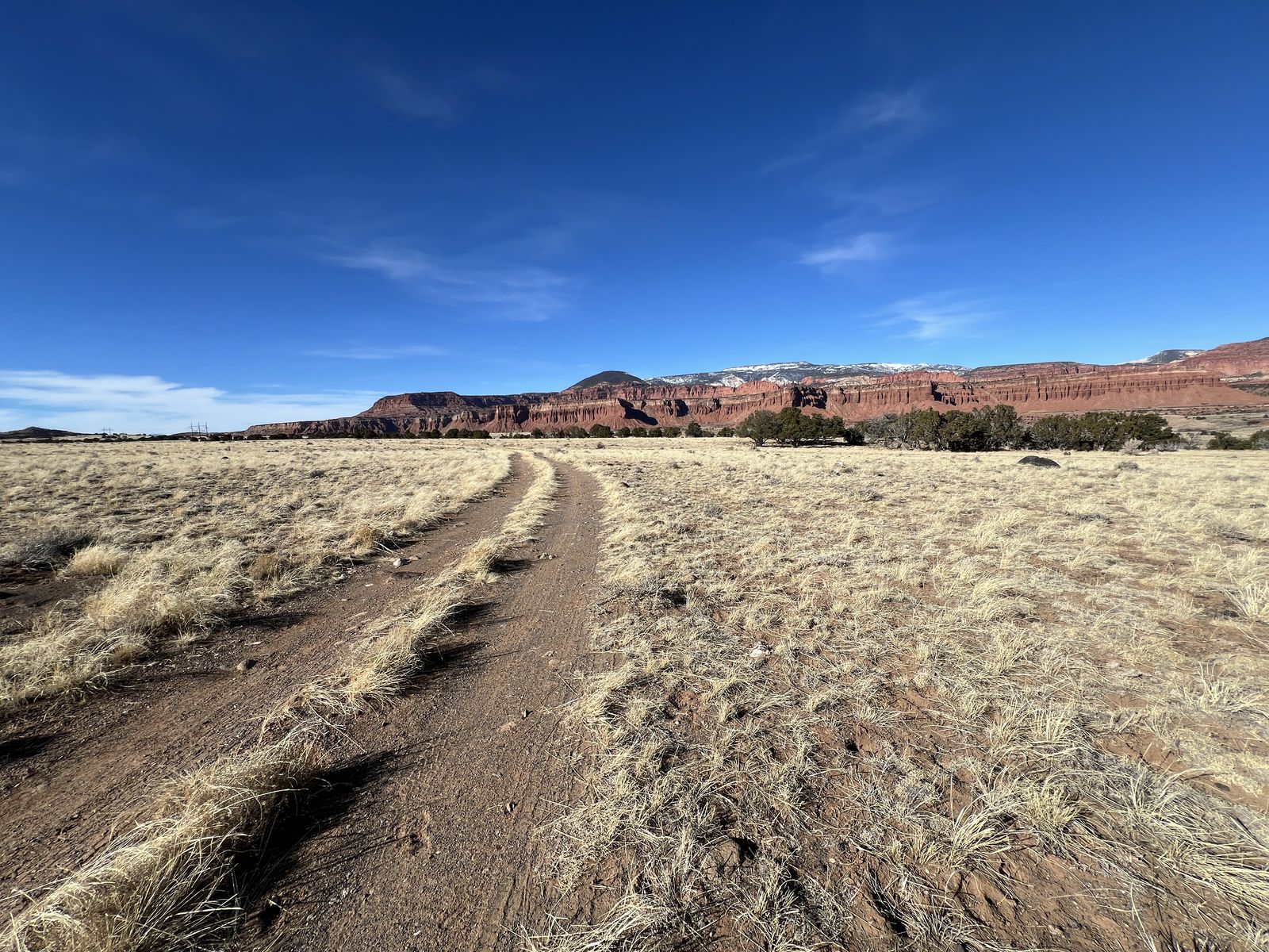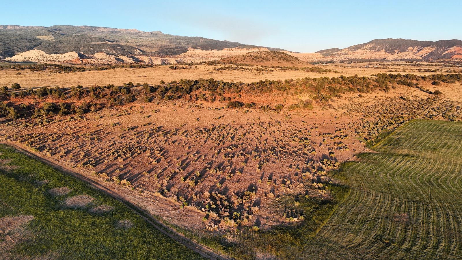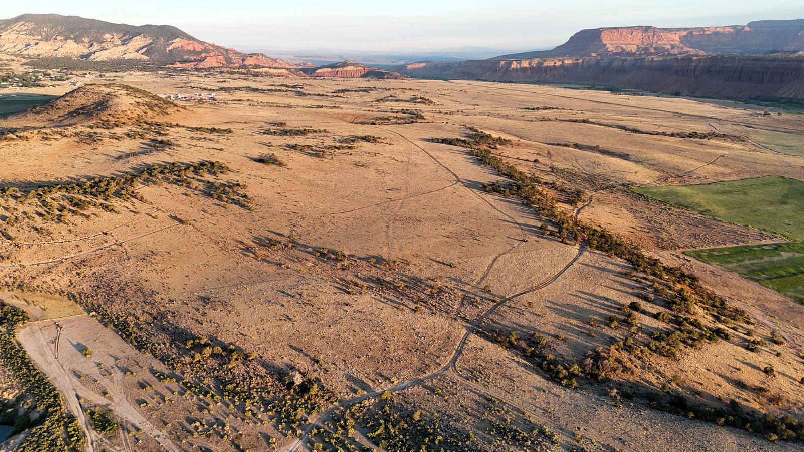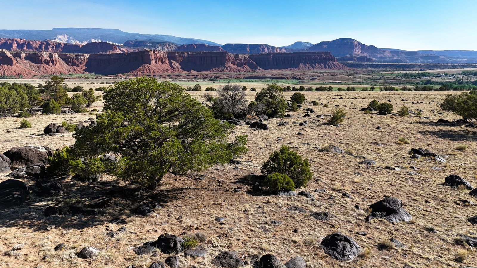 From multiple vantage points across the parcel, there are clear views of surrounding natural landmarks, including the Boulder Mountains to the south and the distinctive red rock formations and bluffs that characterize the region. The northern portion of the property drops approximately 100 feet, creating a natural edge where the Fremont River can be seen below. Along the southeastern boundary, views extend toward Cottonwood Creek, an area that supports local wildlife activity.