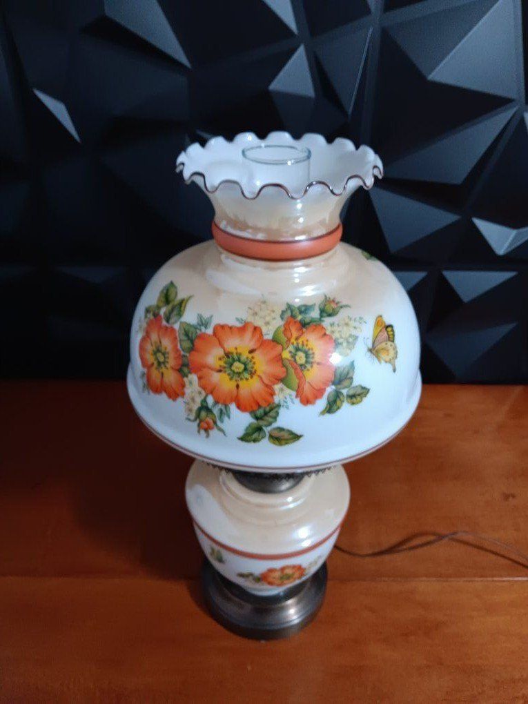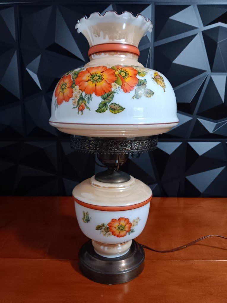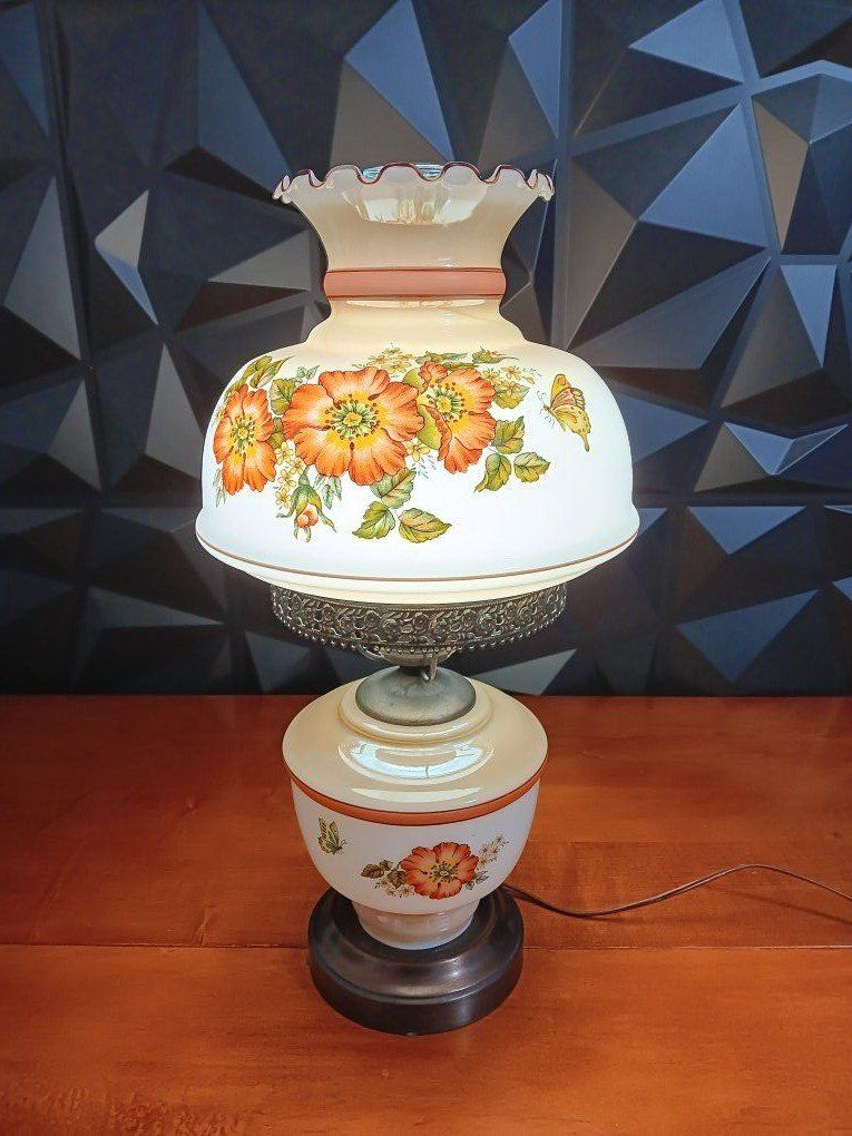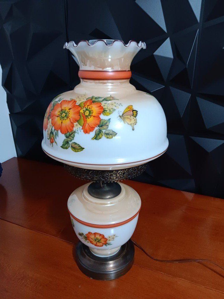 VenmoVintage White Milk Glass Hurricane Gone With The Wind Lamp w/silver Base Floral. 22" Excellent Conditions! inf 702 3558824