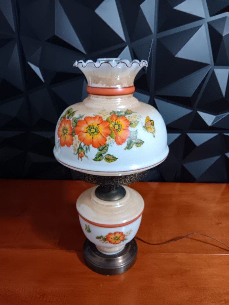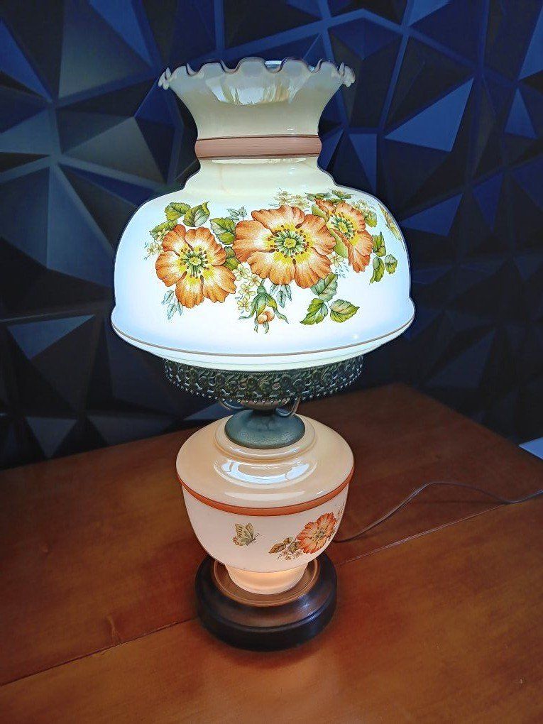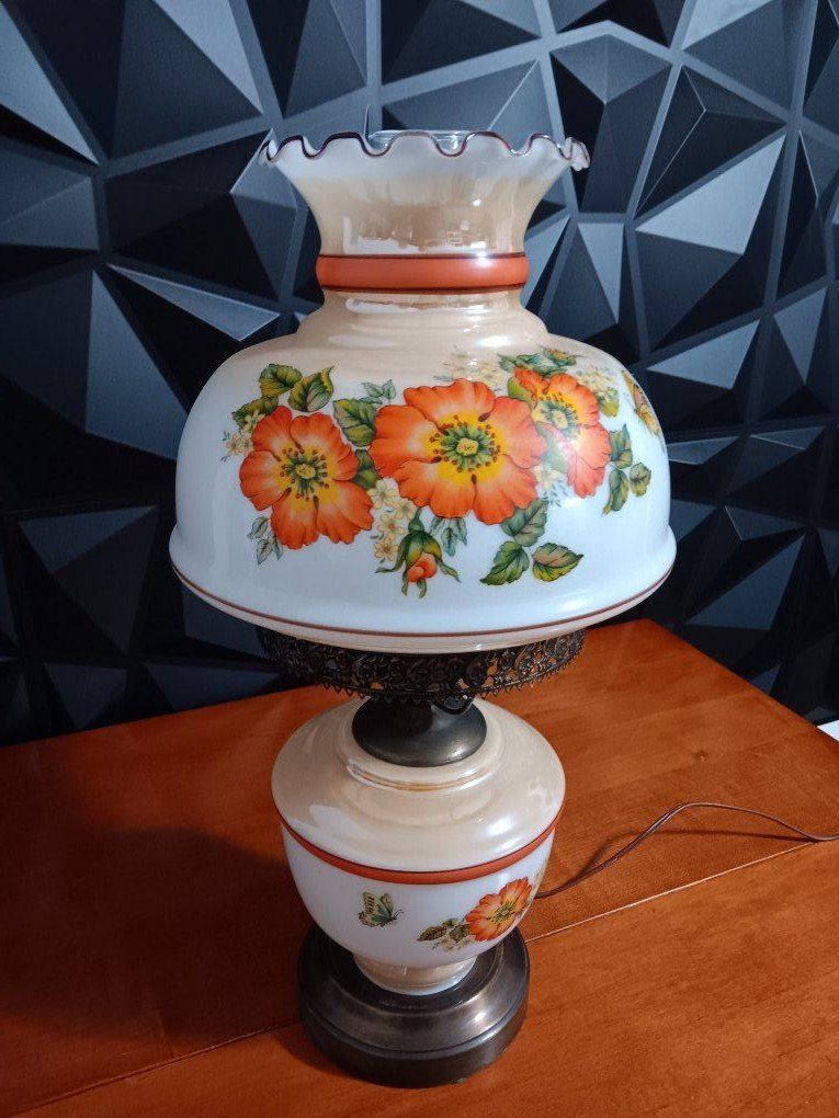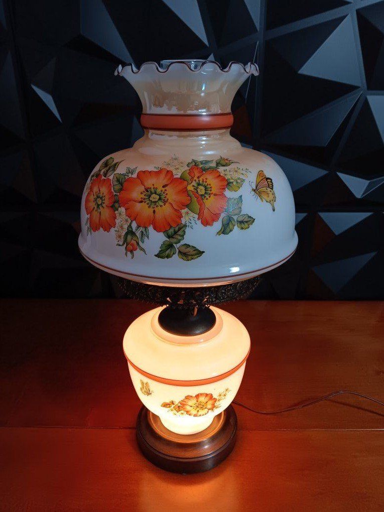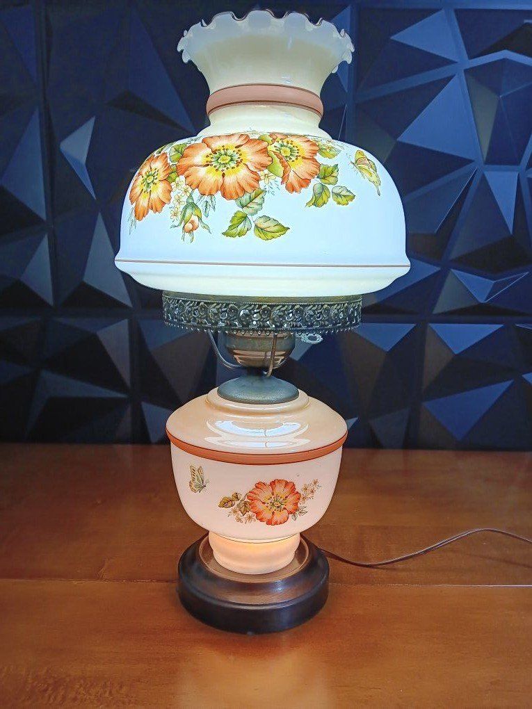 VenmoVintage White Milk Glass Hurricane Gone With The Wind Lamp w/silver Base Floral. 22" Excellent Conditions! inf 702 3558824