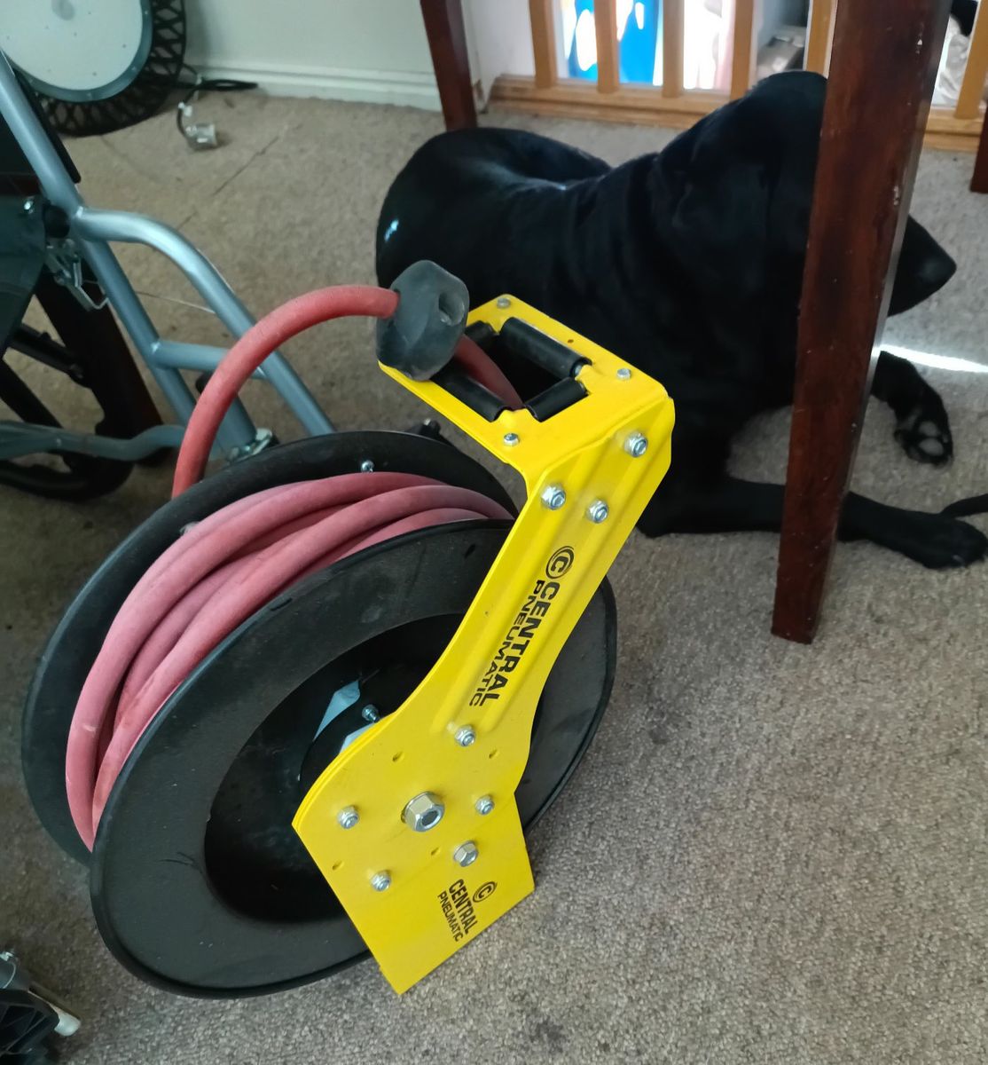 it's a mountable compressor air line/hose thing with a automatic windup feature.