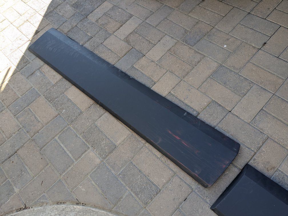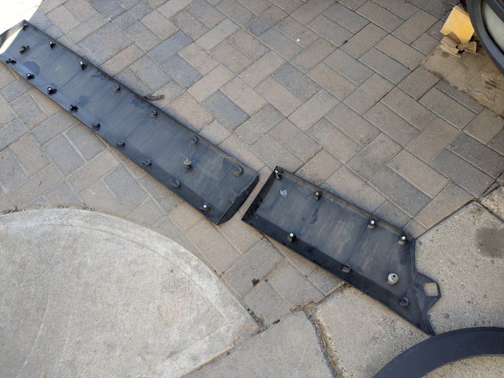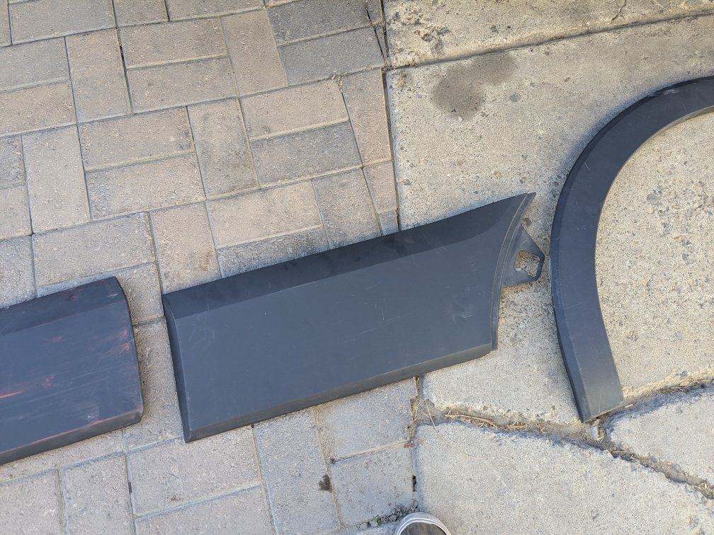 Left hand/ driver side plastic cladding for 2015 through 2019 Ford Transit van. Some of the tabs are broken off or bent but easily repaired. The exteriors are actually in really good condition with one panel having some paint transfer that will come off.