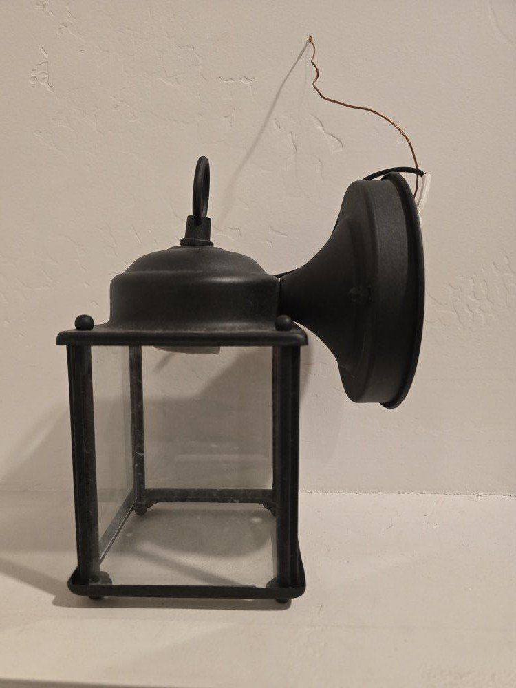 ZelleBlack Decorative Hardwired Outdoor Wall Light Lantern Sconce with Clear Glass Shade and No Bulb Included. Was in our backyard for a short while and we switched to another one.