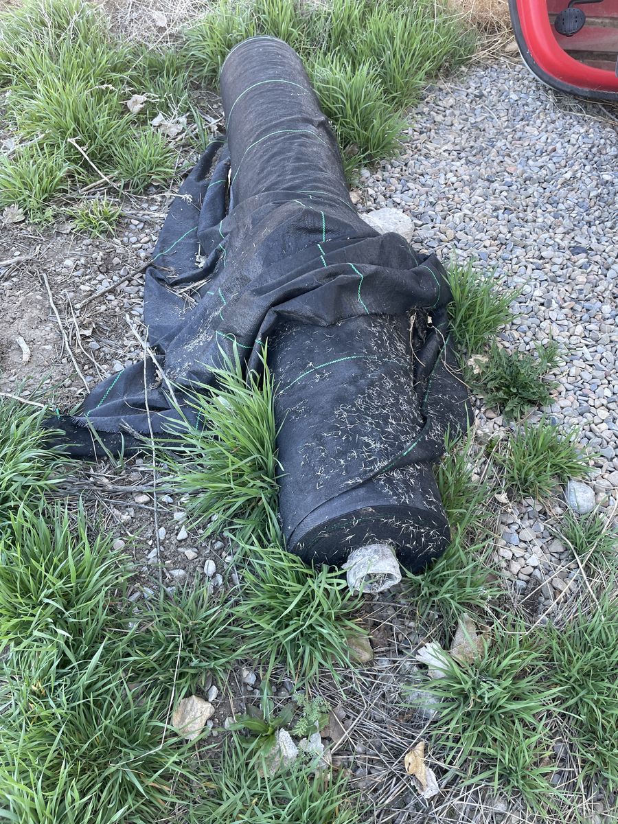 Heavy duty black ground fabric for weed control. The whole roll cost $250. A landscape guy told me there is more than half a roll on the bolt $75 OBO