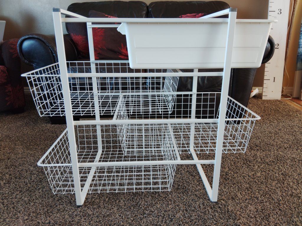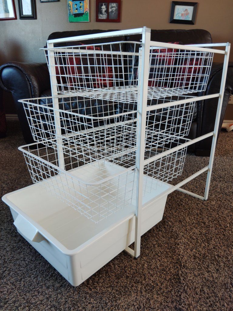 VenmoIkea Antonius storage drawers. All four drawers are free sliding, easily removable and can be arranged in any order. Frame is solid and unbent. Some minor wear to the finish. Height: 27.5 Width: 17.5 Depth: 21