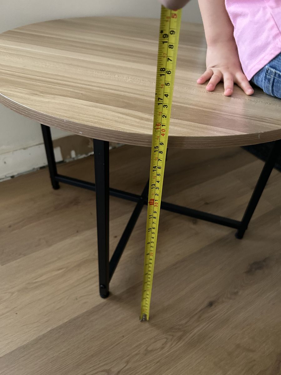VenmoSmall circle shaped table. Good for toddlers or to hold decorations. Overall good condition. Metal legs with a wood veneer table top. Measurements are in the pictures. Selling for $20. Located in Provo.
