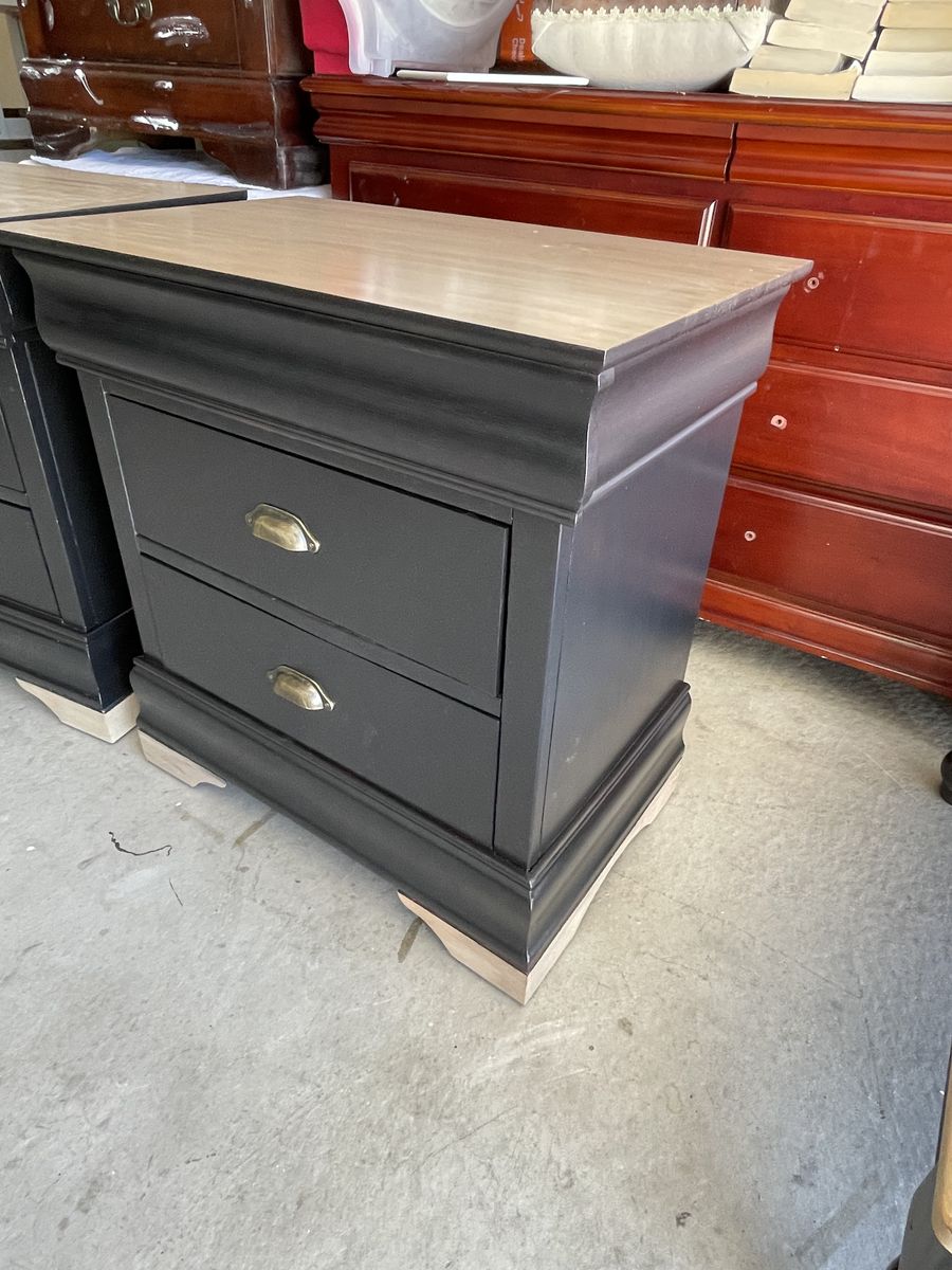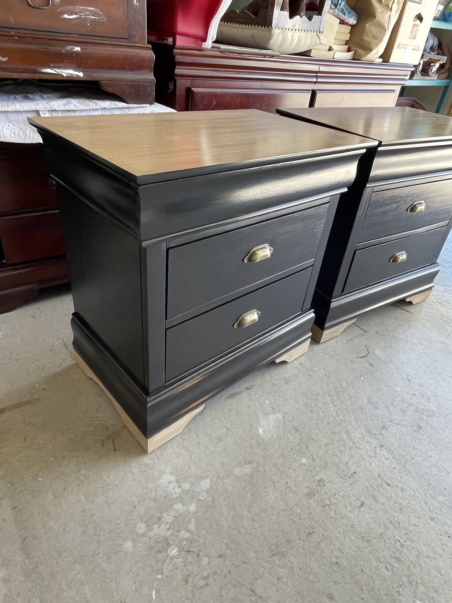 Modern black nightstands 3 drawers (one hidden) Brass cup pulls $450 in Tooele