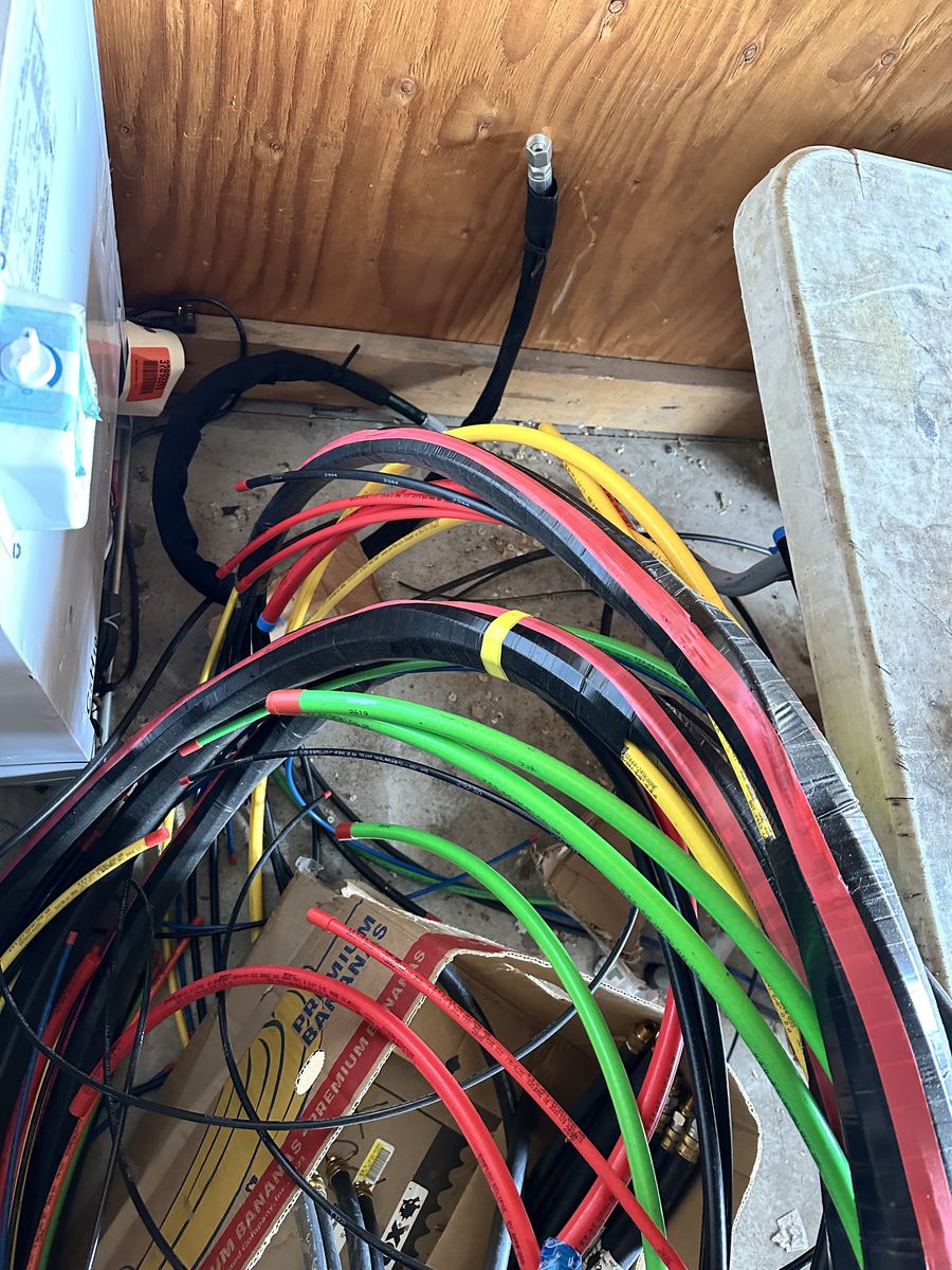 Bunch of asst semi truck hoses, or hoses for tractor trailer. One set of long ~25’ or more hoses and a bunch of shorter Air brake hoses etc must take all.