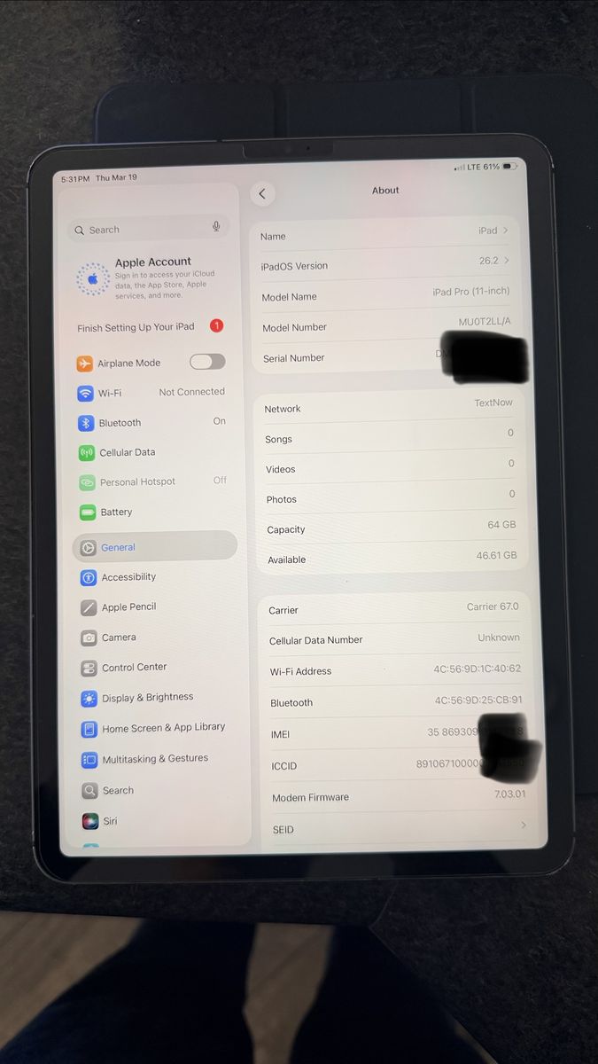 CashAppSpace gray iPad Pro 11” 64gb WiFi+cellular unlocked working with any carries and international service iPad has screen protector and original stand case Apple. If you interesting please text me.