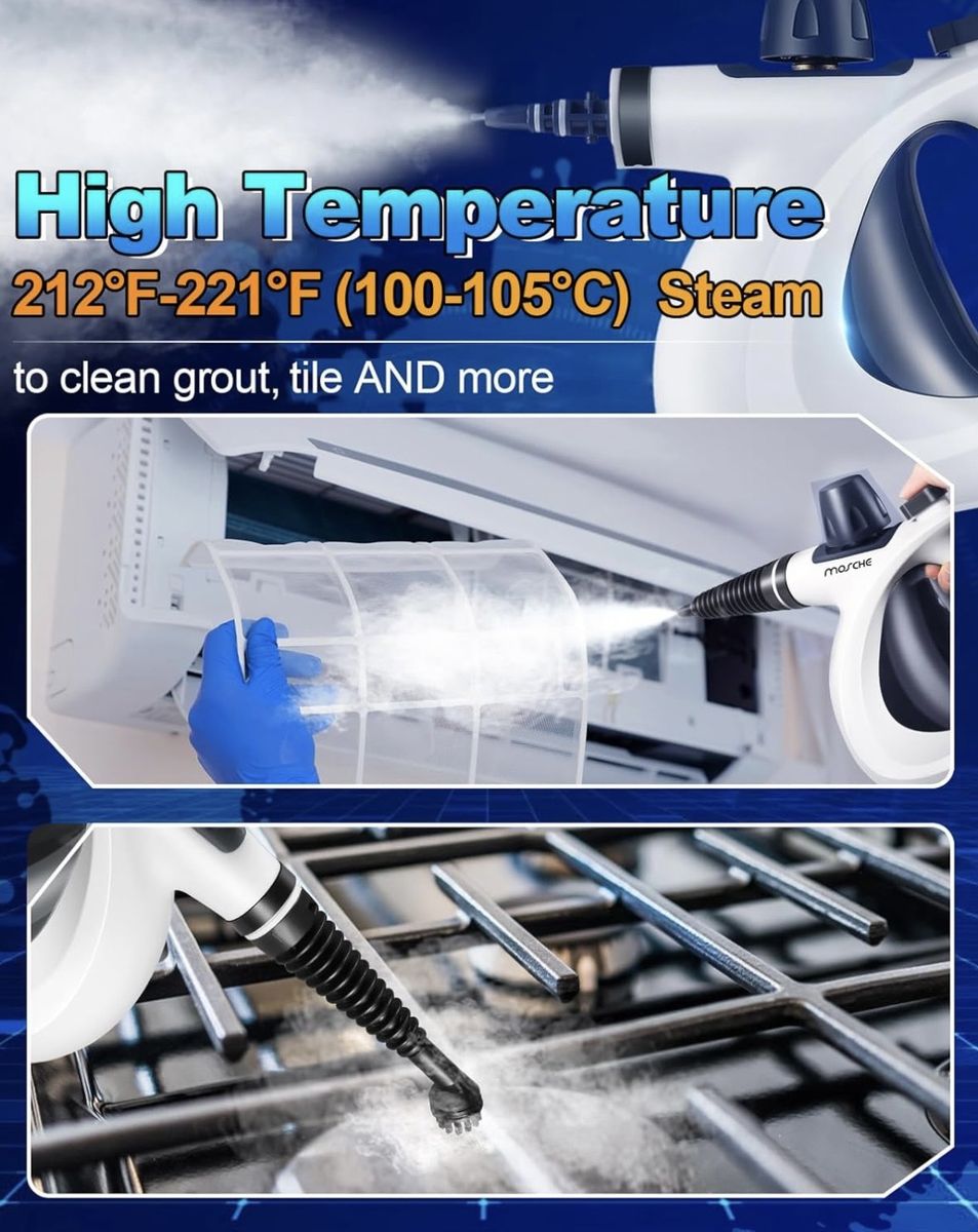 CashAppHandheld Pressurized Steam Cleaner with 11-Piece Accessory Set, Multi-Surface Steamer for Cleaning, All Natural Steam Cleaner for Home, Upholstery, Car, Floor, Kitchen and More