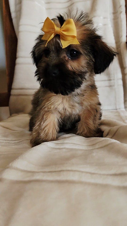 CashAppWe have a litter of the most precious little pups. Their mom is the best mom and has passed her sweetest soft personality on to her little babies. They aren't whiny or anxious. They hardly make noise actually. They love kids and other dogs. They have been well socialized which makes a huge difference when adding them to your family. We have one little boy and one little girl left. Our little boy is such a tender little sweetheart. He will go anywhere you go and is excited to be a part of everything you do. Our little girl is one smart cookie. She is always paying close attention and learns very easily. Both are little cuddle bugs and love to sleep on your neck. They fall asleep immediately once they get up there. Both are doing amazing with puppy pads and are starting to use the dog door to follow mom outside and go potty out there. First set of shots given by the vet along with a health check. Paper work will be given with each pup. mom is 7 pound imperial shih tzu. Dad is 3 pound yorkie. Both pups have a lighter coat coming in and will be a soft tan color with black accents once they are given a haircut. Tail docked and dewclaws removed