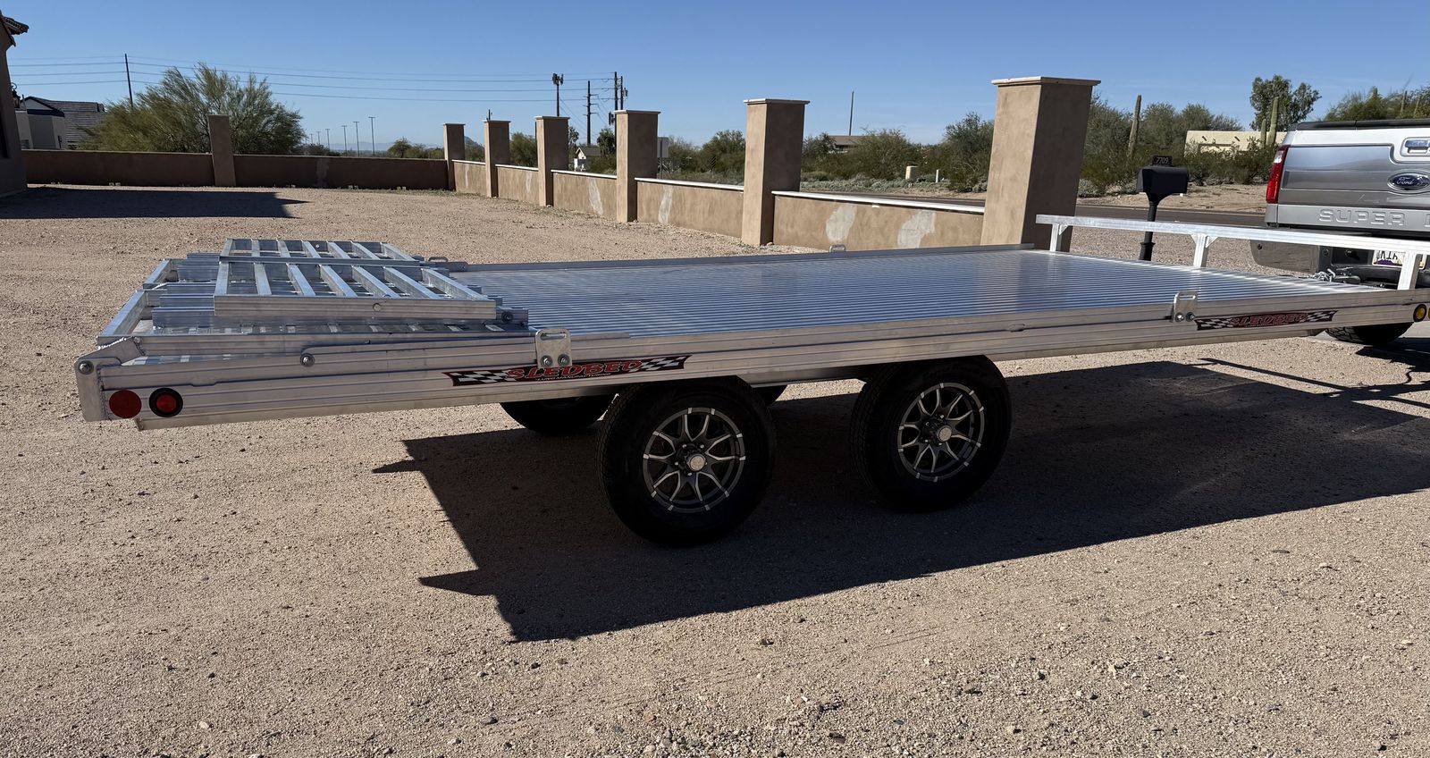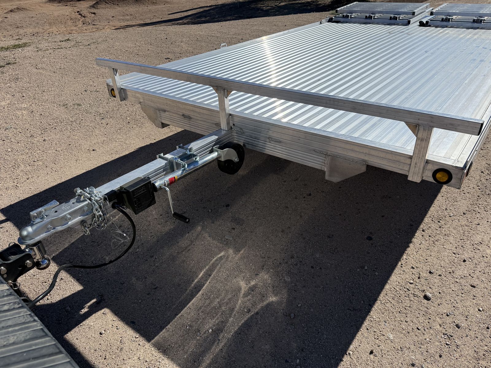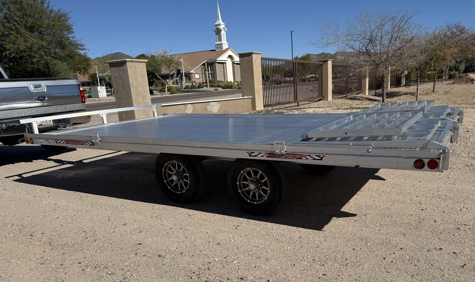 Zelle2026 Sledbed Aluminum trailer 16' x 102" (other deckover brands are only 86" wide), 3500 lb torsion axles (one brake), sealed DOT flush mount LED lighting, 2" coupler, extruded Aluminum Decking, Rust inhibiting hardware, Bi-fold ramp gate, integrated tie downs, Aluminum wheels w/ radial tires, Only weighs 900 lbs!!!, Low price of only $6,895.00. Cash, Credit Card (3.5%), Zelle, Cashiers Check are all accepted. Call or Text for more info. (480)220-9654. Made in the USA. Other sizes available w/ 2-3 week lead times. Located in Mesa, Az. Pull out ramp options available instead of Bi-folding gate. Winch option available as well. Shipping available
