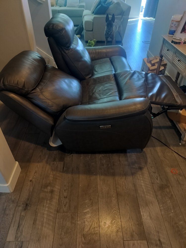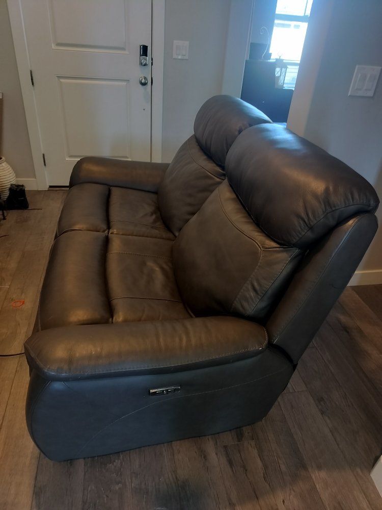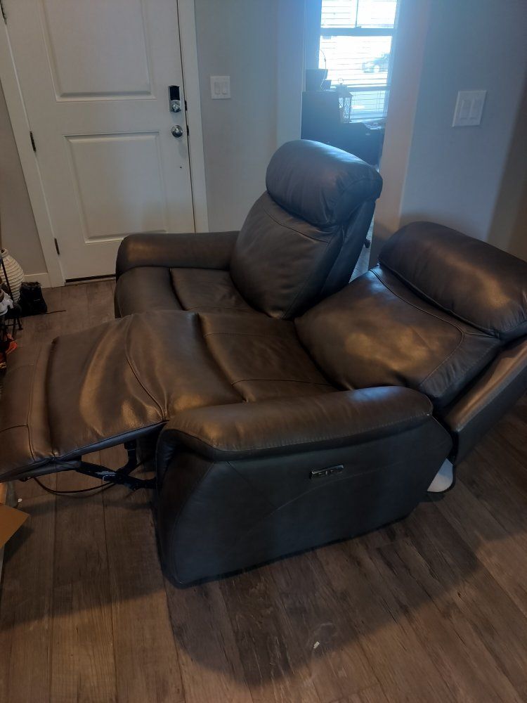 VenmoGrey electric love seat that fully works and is in great condition. There is a marker stain on the side but leather is in great condition.