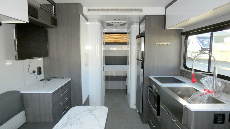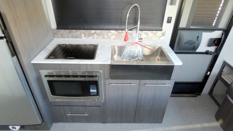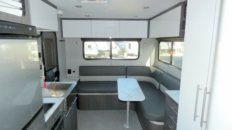 Description inTech RV O-V-R travel trailer Navigate highlights: - L-Shaped Dinette - 32" Smart TV - Convection Microwave - Exterior Storage Compartments Navigate tough roads in this O-V-R travel trailer! You will love having your own walk-around queen bed in the front bedroom, or you can choose the optional twin beds in place of the queen bed. There is a private porcelain toilet and a round sink across the hall from the shower, allowing two people to freshen up at once, and you'll appreciate the base cabinet with under-sink storage for your toiletries. Once you've worked up an appetite from hiking, head to the kitchen to prepare lunch on the stainless steel two burner cooktop and grab a cold drink from the 10 cu. ft. 12V refrigerator. You can dine at the L-shaped dinette, or head outdoors to relax in your camp chair. Add the optional slide out exterior kitchen or the optional 3.6kW LP generator for even more convenience! The O-R-V travel trailers and toy hauler by inTech RV allow you to experience adventure off the beaten path with its rugged exterior and lightweight construction provided by the all-aluminum fully welded cage frame. The power tongue jack will make setting up camp a breeze, plus there is a fold-away double entry step and exterior lighting for added convenience. Inside, you'll find a large farmhouse style sink, a MaxxAir vent for ventilation, plus infinity woven flooring. There is a Bluetooth stereo with four speakers and a 32" Smart TV included with each model, plus USB and 110V outlets to keep your electronics charged and ready to go. Further customize your O-V-R by adding the optional power awning or the optional Off-Grid Package with 400 watts of solar power, 20 amp hours of lithium batteries, and a 2,000 watt inverter!