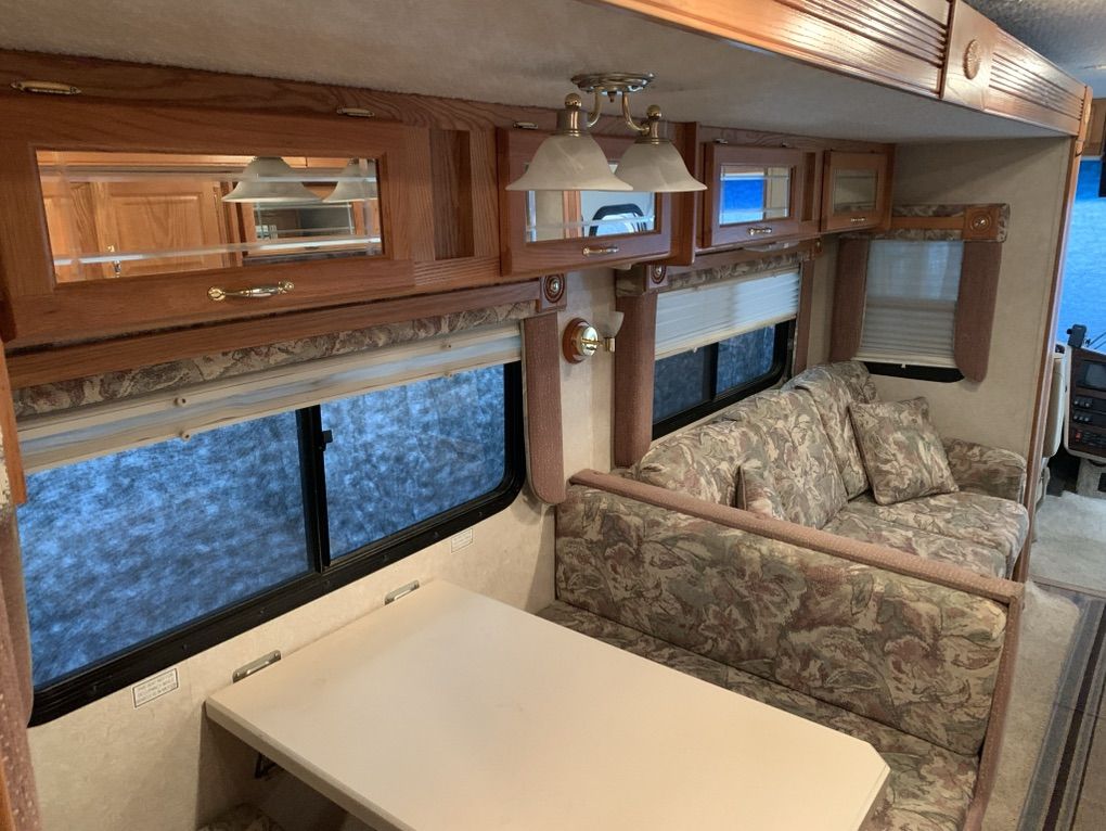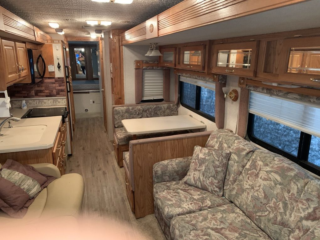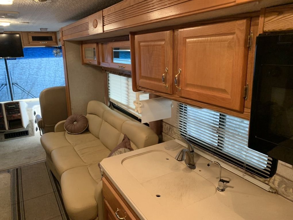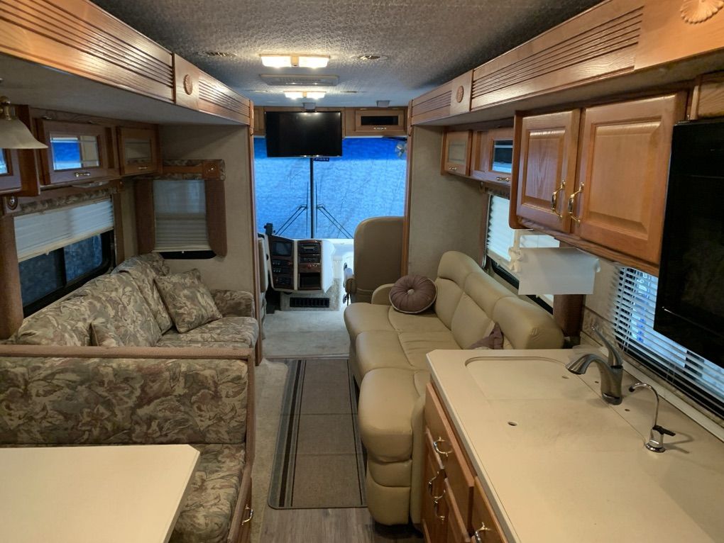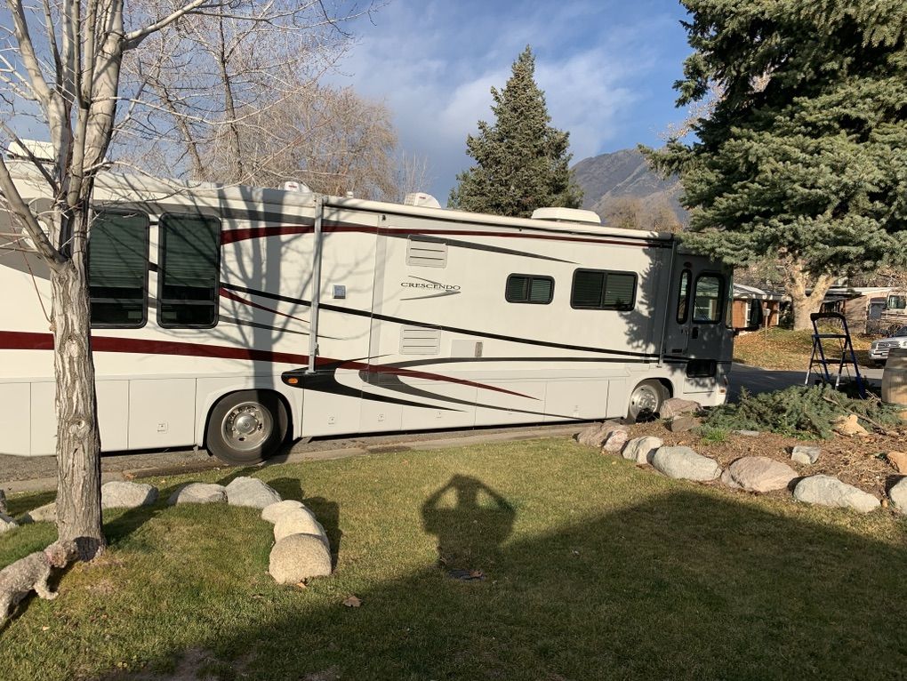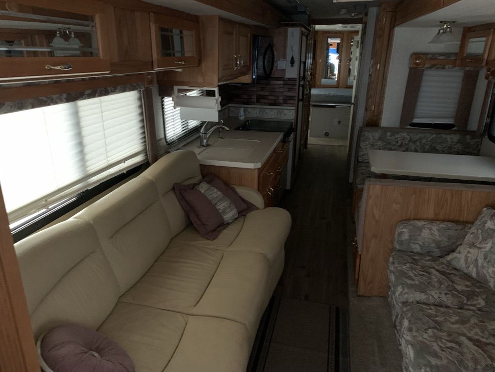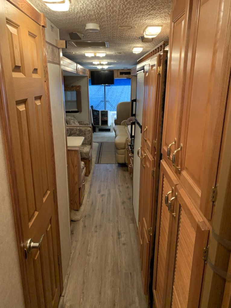 2004 Goldstream crescendo it is built upon the Fleetwood frame. It has a caterpillar 330 diesel motor six speed transmission. Jake brake automatic hydraulic self leveling system, 5600watt Cummings generator works great 5600 miles runs excellent it's in very good shape. It has three slides Ithere is a little damage on the passenger side wheel, well but it looks like my insurance is going to take care of it and repair 60