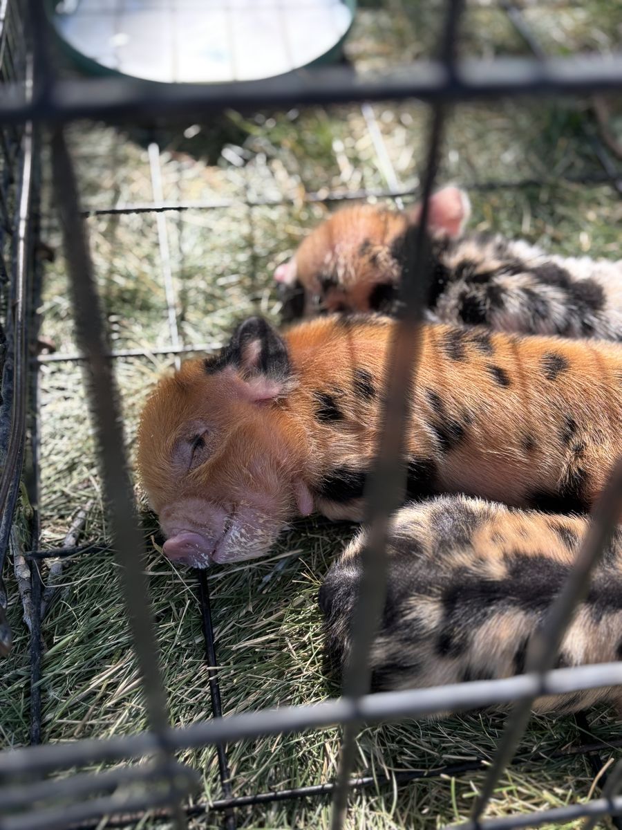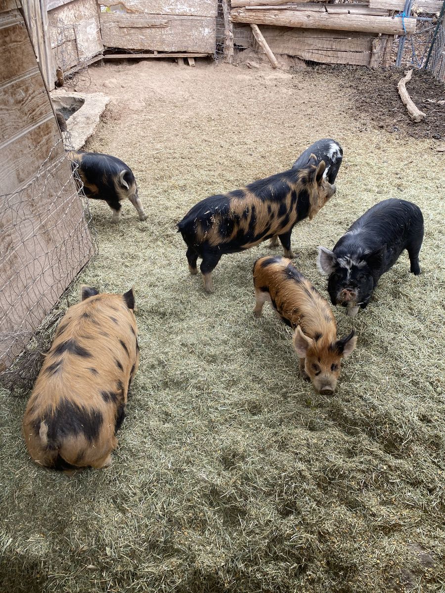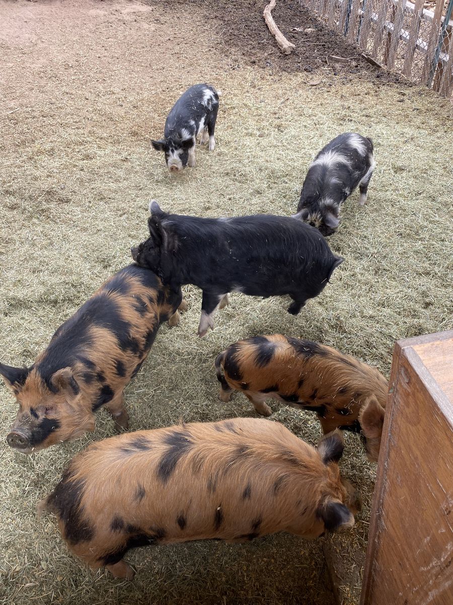 ApplePayBorn July 2025. Currently 8 months old. These pigs prefer hay over grain but eat both.